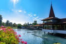 Это один из самых красивых и популярных термальных комплексов Венгрии, расположенный в самом сердце города Эгер. Она занимает территорию около 5 гектаров и предлагает 13 бассейнов с лечебной водой, включая радоновые источники, которые особенно ценятся за целебные свойства