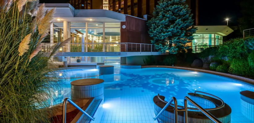 Рядом с теплым озером Хевиз, где вода и торфяная грязь творят чудеса для мышц и суставов. Отлично подходит для релакса после активного сезона. Забронируйте термальные ванны, гидромассажи, хаммам, грязевые обертывания и базовую диагностику — полный спектр для восстановления сил.