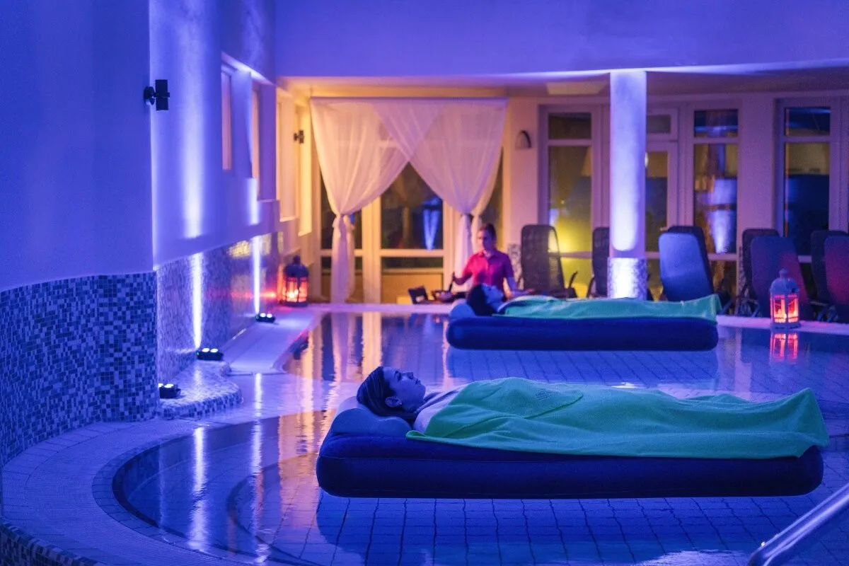 Восстановите равновесие и гармонию: побалуйте свое тело нашими особыми видами массажа, искупайтесь в наших бассейнах, откройте для себя особые впечатления от сауны-церемоний и лечебного отдыха в уникальной (единственной в Хевизе) соляной пещере, с солью Мертвого моря.