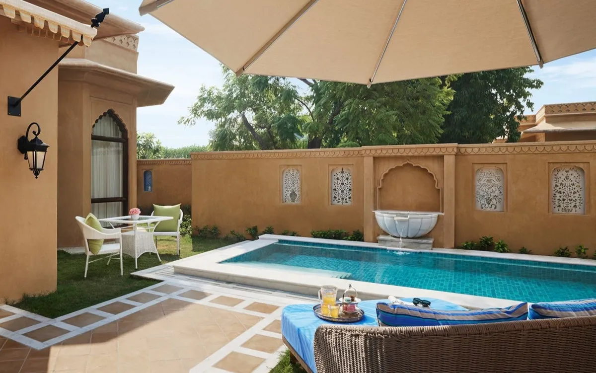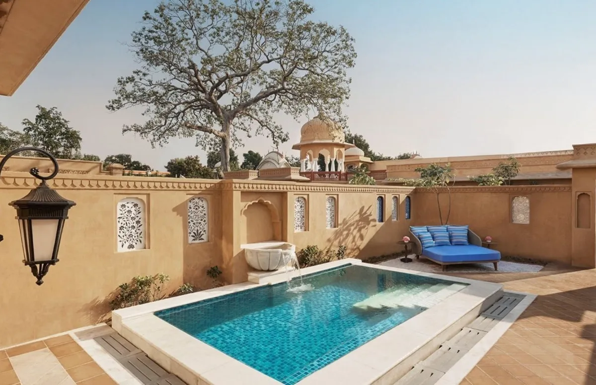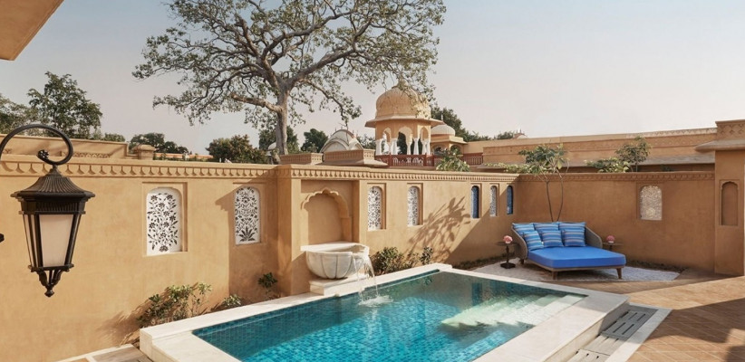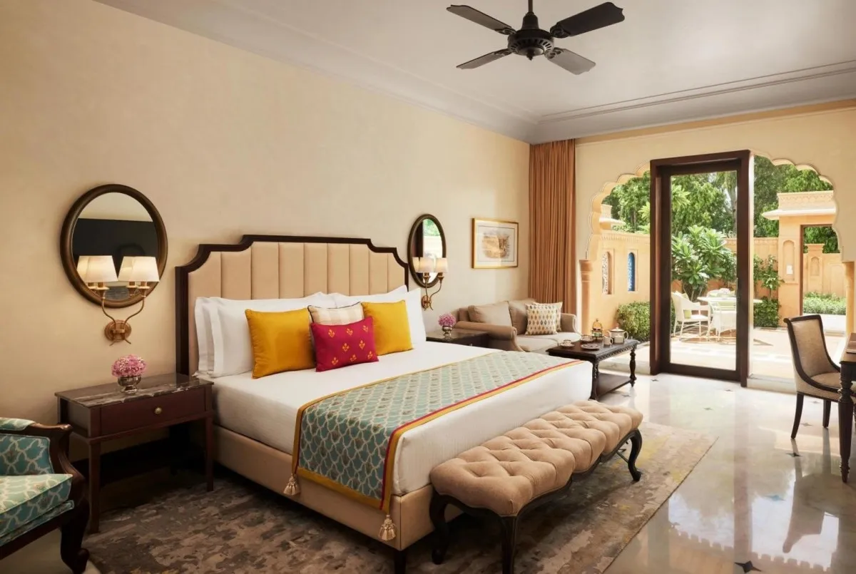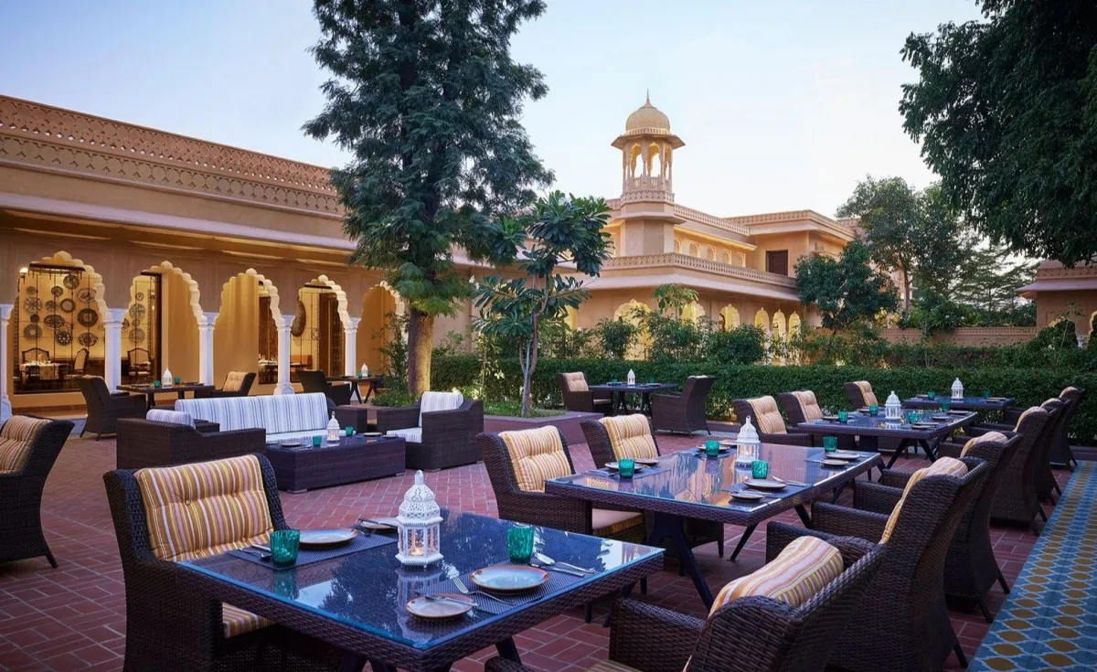 Отель вдохновлен богатым раджпутским наследием, сочетая мотивы архитектуры прошлого с современным обслуживанием. Фасад здания отсылает к Amber Fort, а в лобби отеля размещены Golden Gate – оригинальные золоченые ворота из Rambagh Palace, возраст которых около 187 лет.