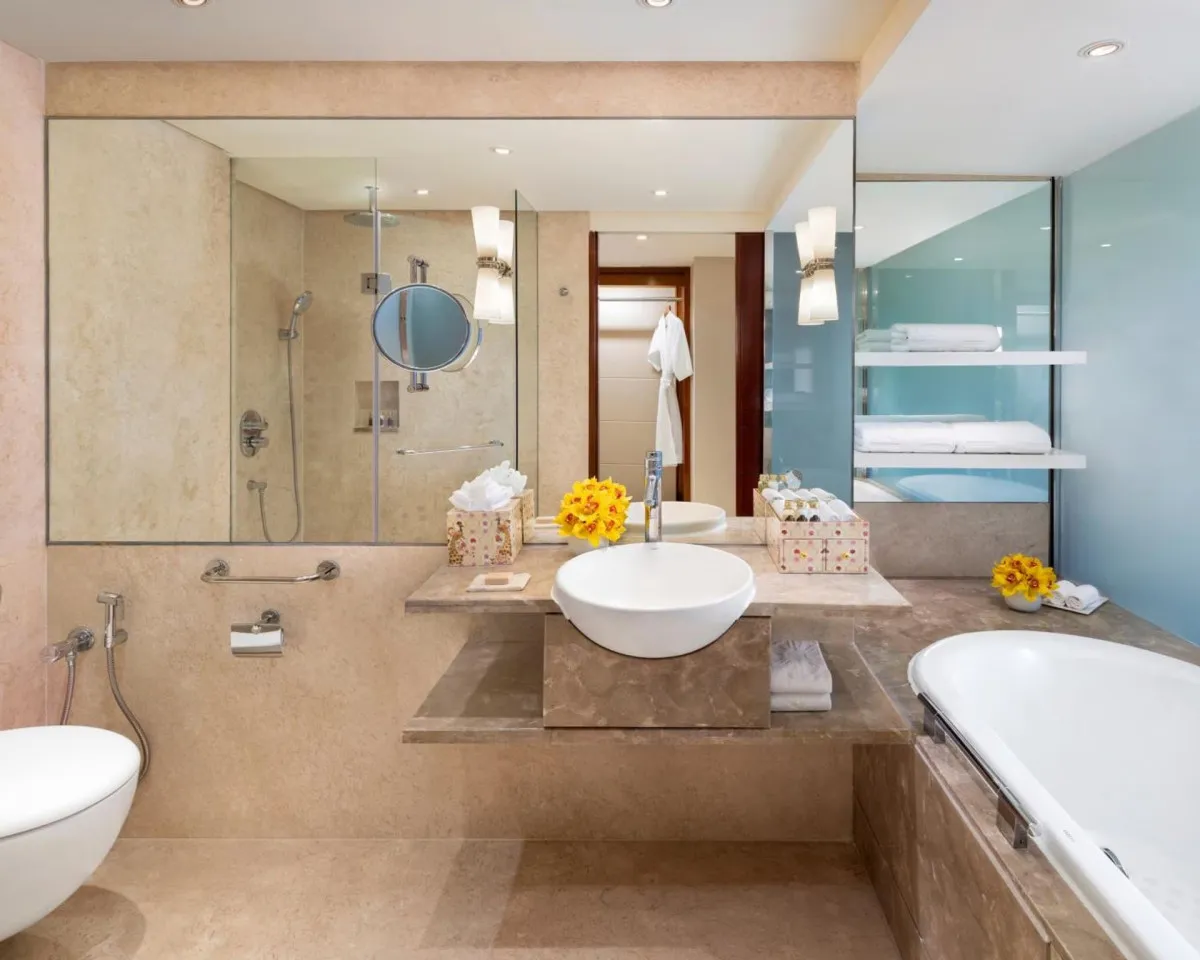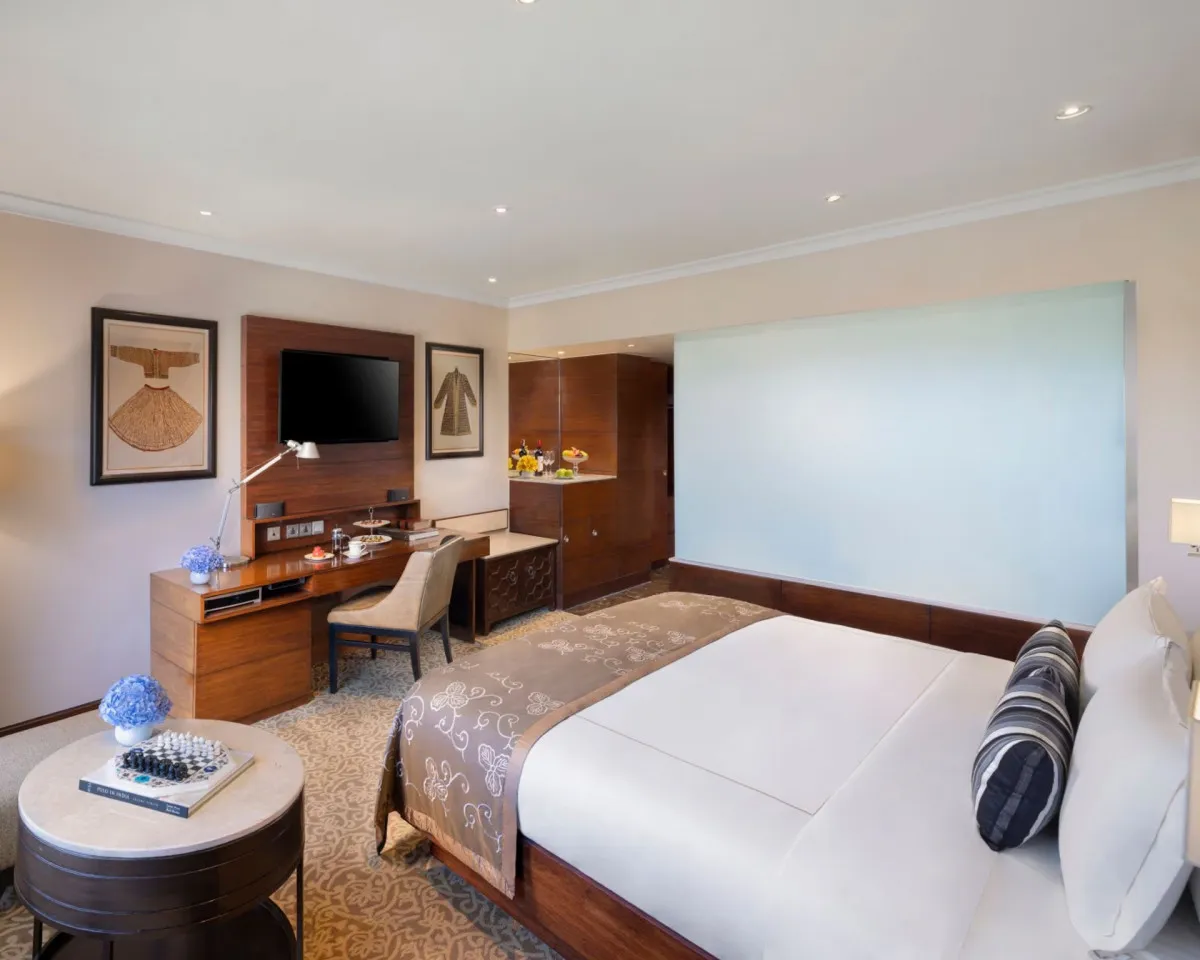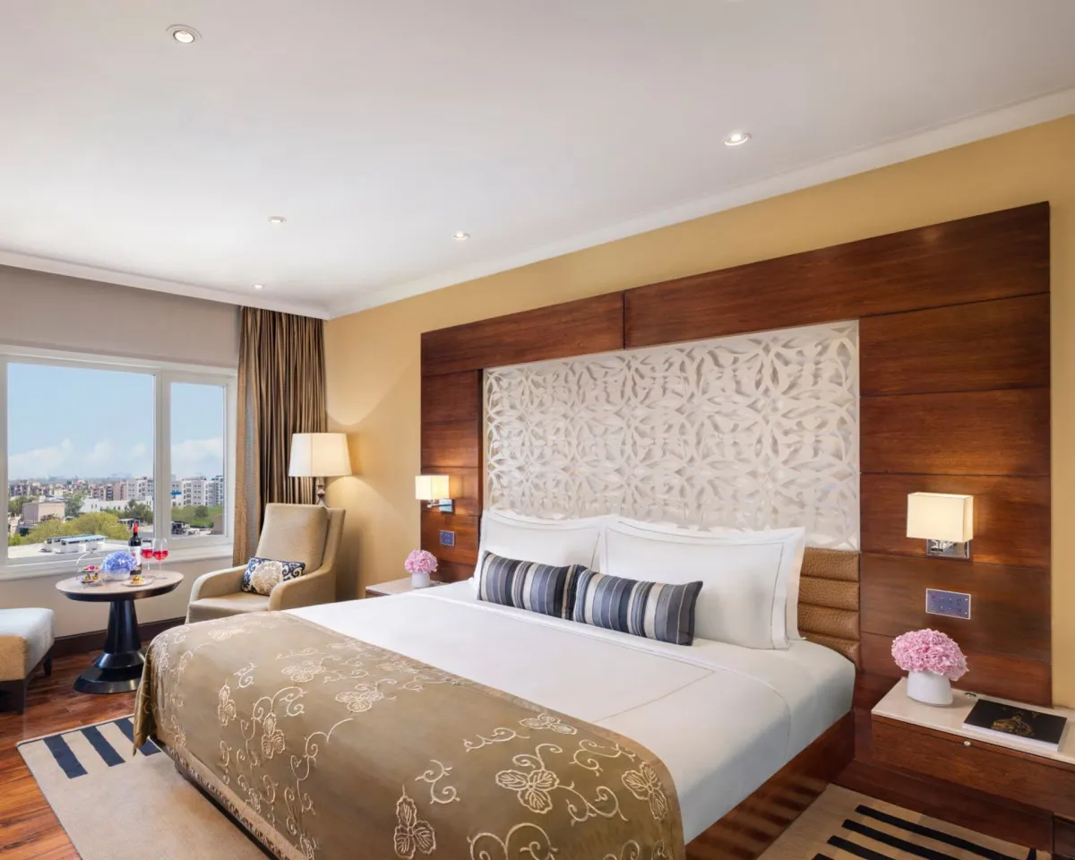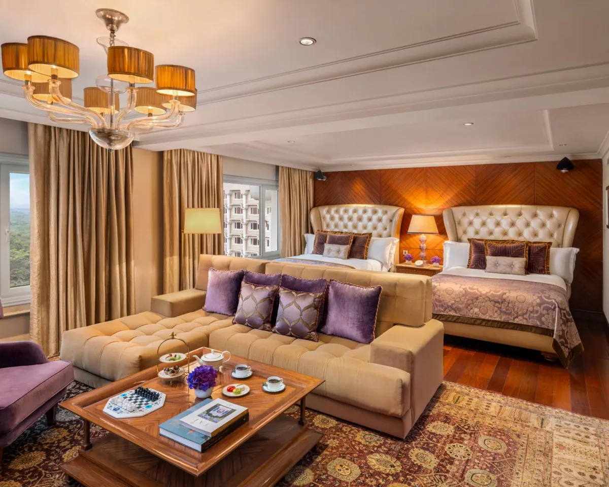 45 м2, кровать размера «king-size», гостиная зона, особое клубное обслуживание, панорамный вид на город. Количество гостей: 3Taj Club Suite King Bed Diplomatic Enclave View
