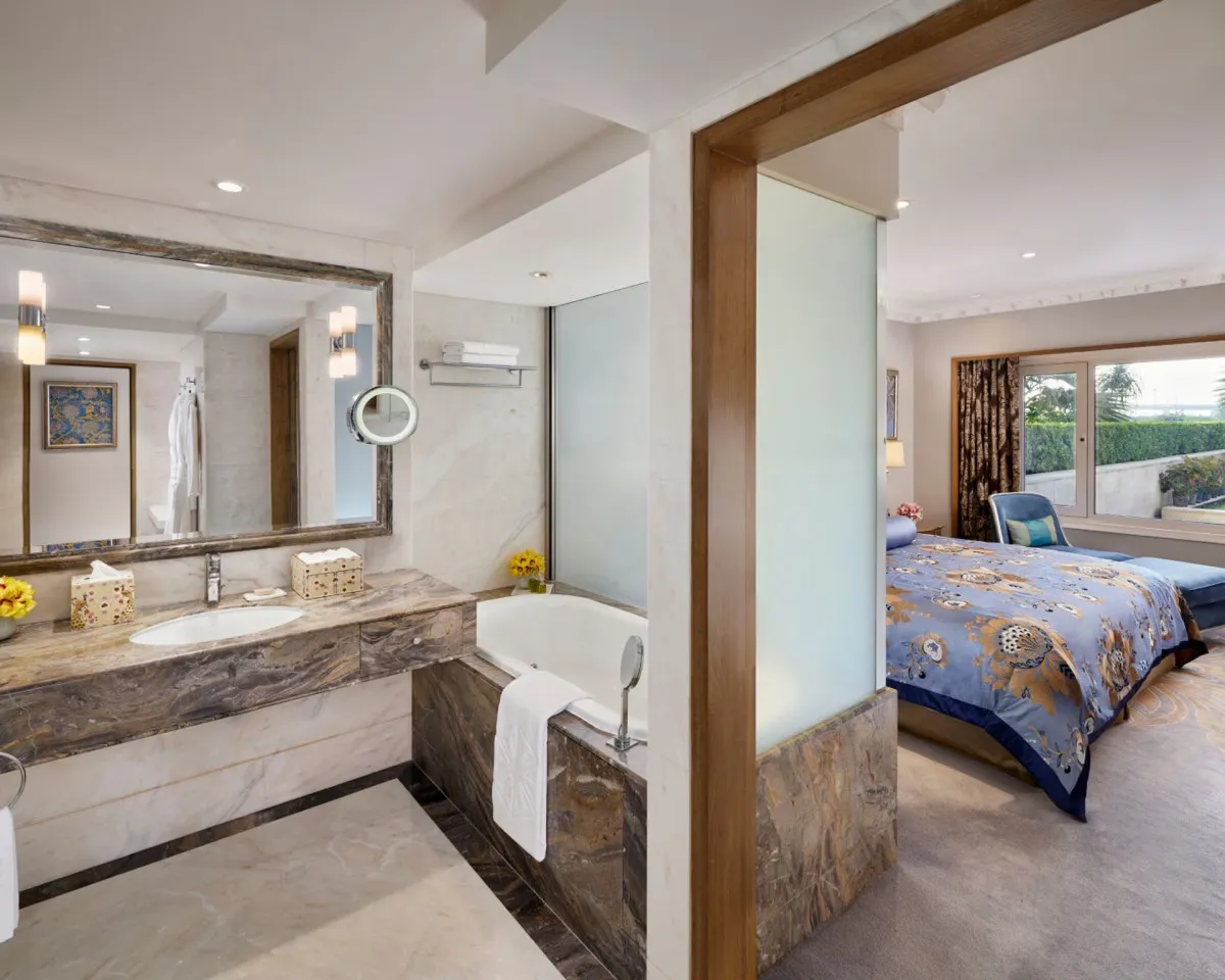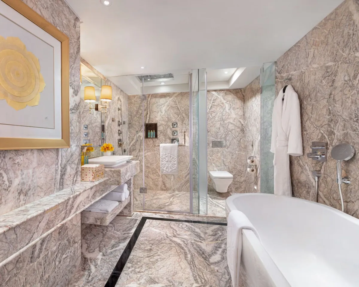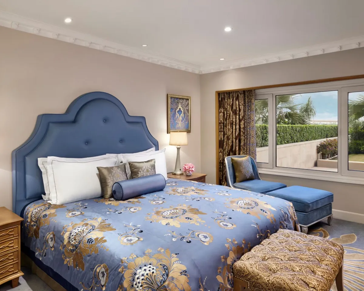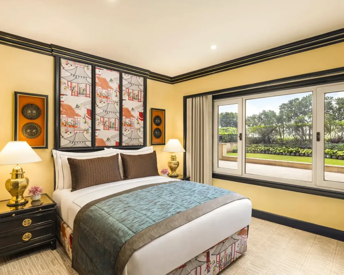Номера и люксы оформлены с использованием благородных материалов, оснащены современными удобствами и открывают виды на Дипломатический анклав и горный хребет. Отель славится безупречным сервисом и историей приема мировых лидеров.