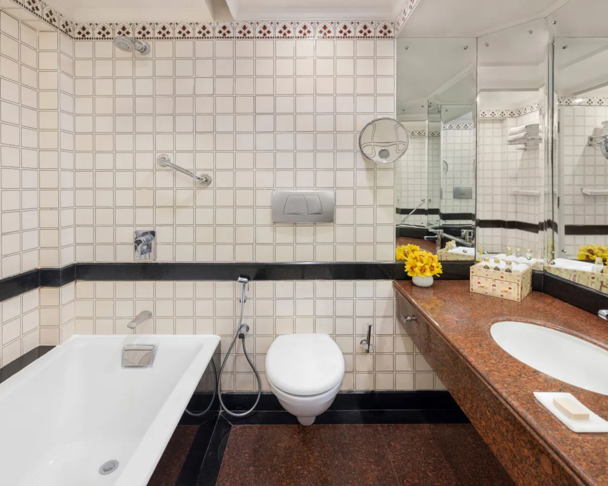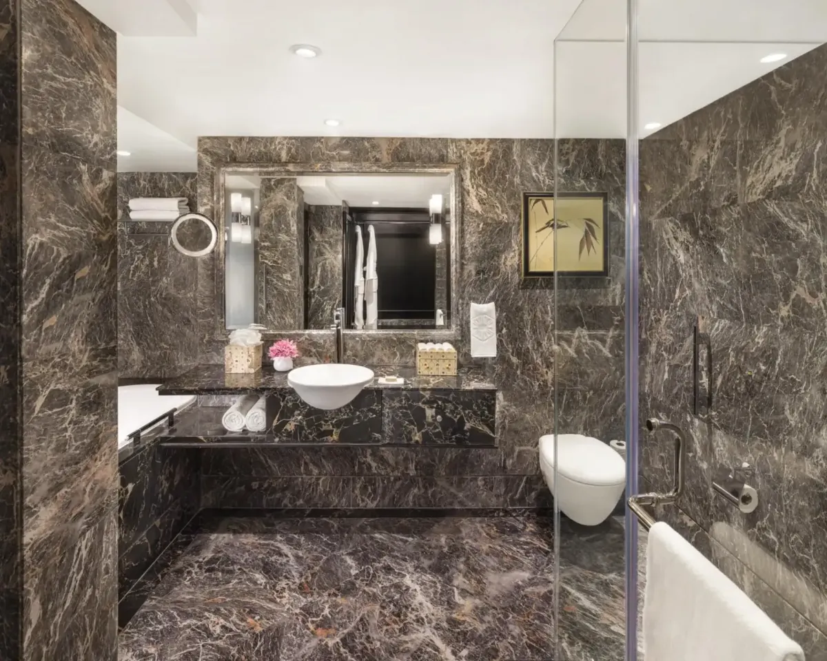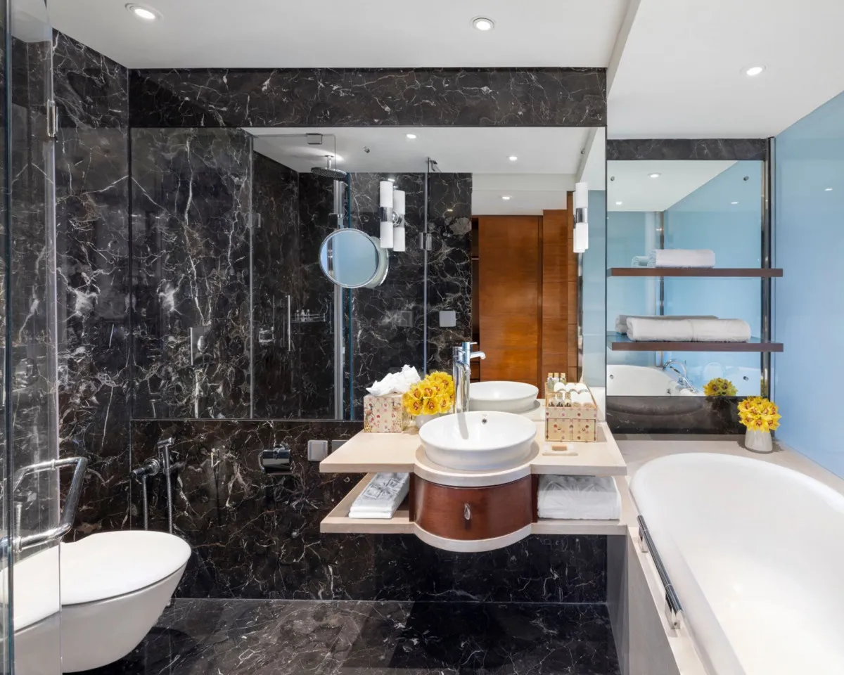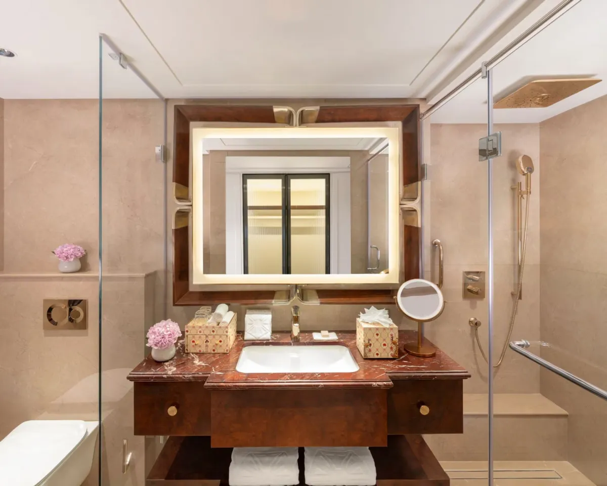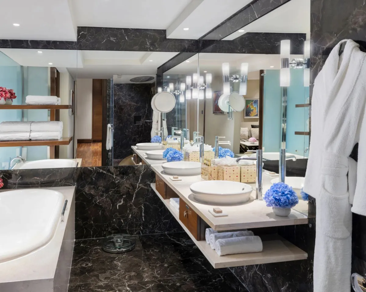 Номера и люксы оформлены с использованием благородных материалов, оснащены современными удобствами и открывают виды на Дипломатический анклав и горный хребет. Отель славится безупречным сервисом и историей приема мировых лидеров.