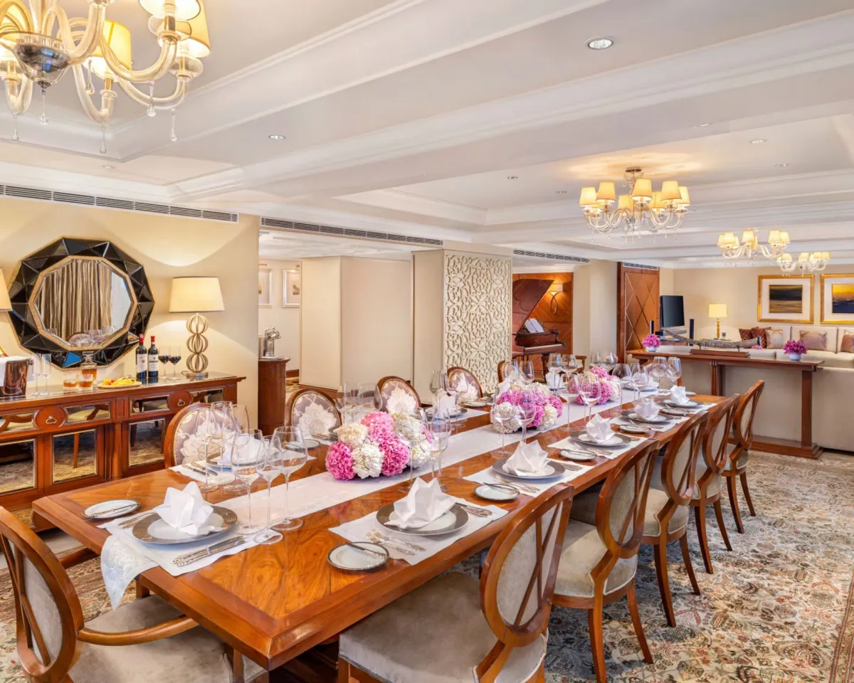 249 м2, кровати размера «king-size», отдельная гостиная, столовая на 12 персон, кабинет, особое клубное обслуживание, вид на бассейн. Количество гостей: 4Tata Suite 2 Bed King/ Twin Pool View