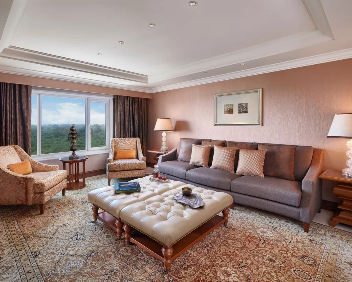 60 м2, кровать размера «king-size», отдельная гостиная, особое клубное обслуживание, панорамный вид на город. Количество гостей: 4Taj Club Suite King Bed Forest and Pool View