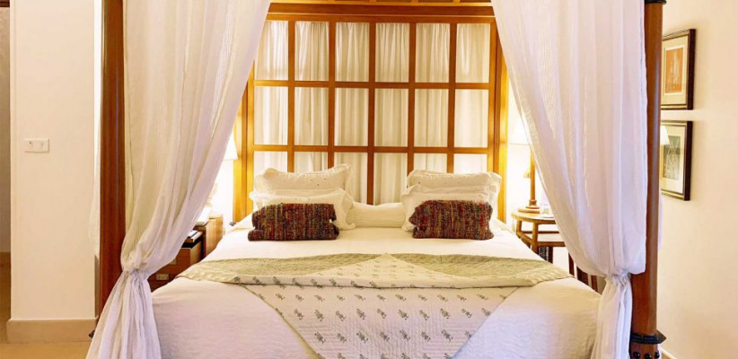 42 м2, вид во двор, двуспальная кровать с балдахиномPremium Room with private pool