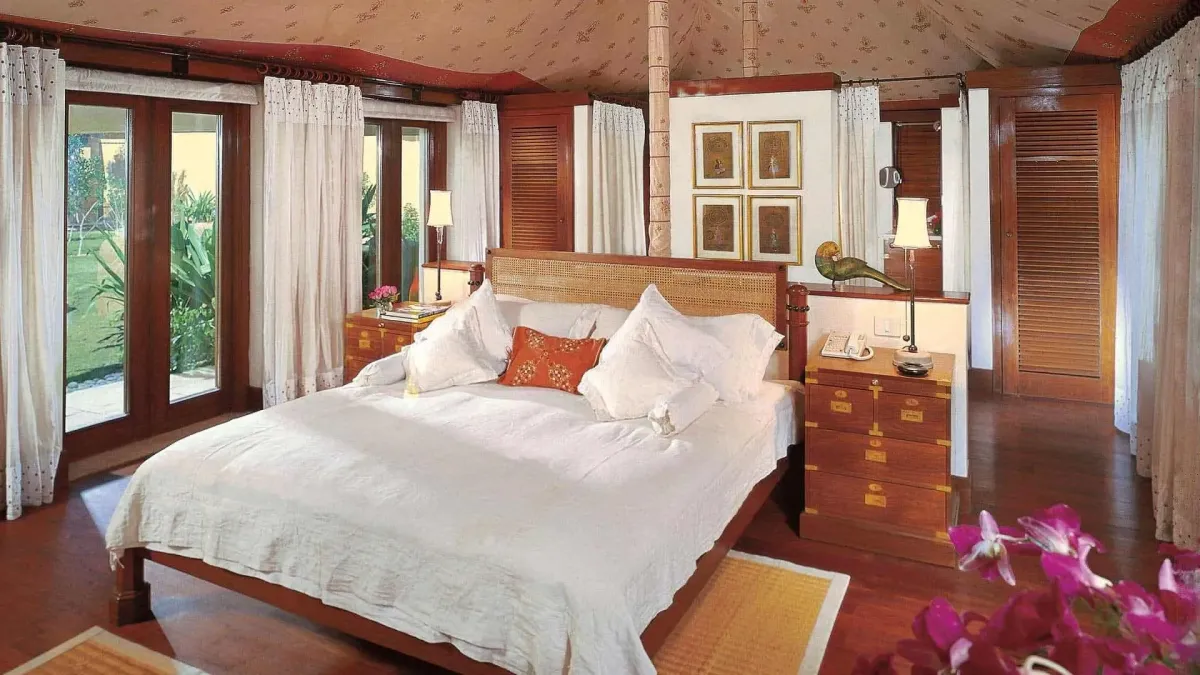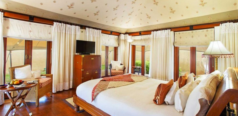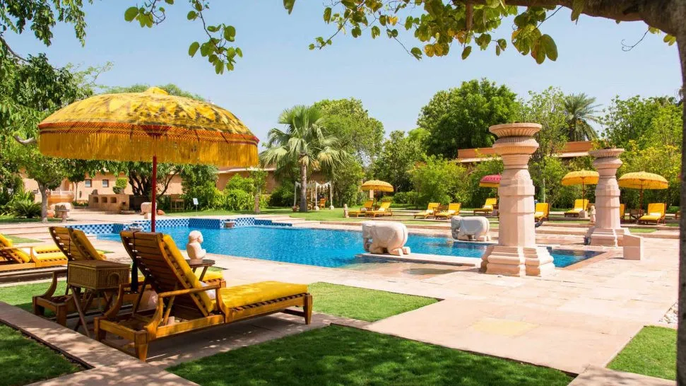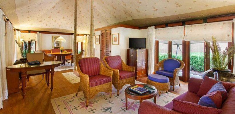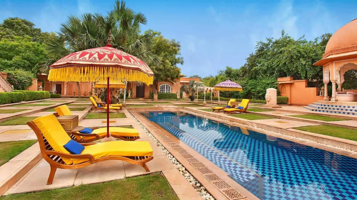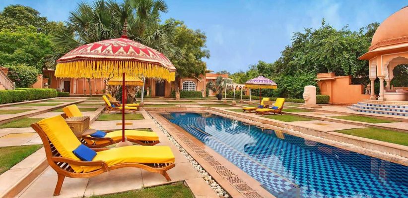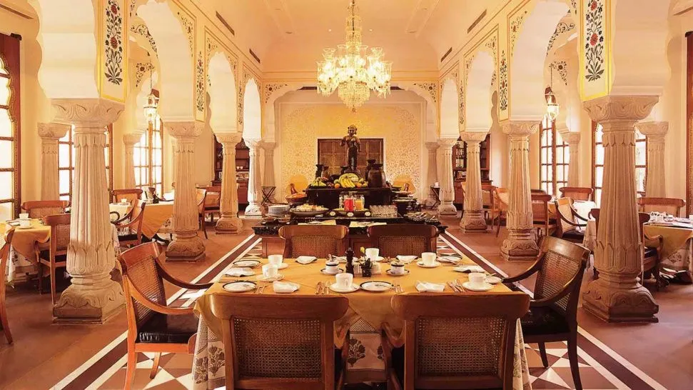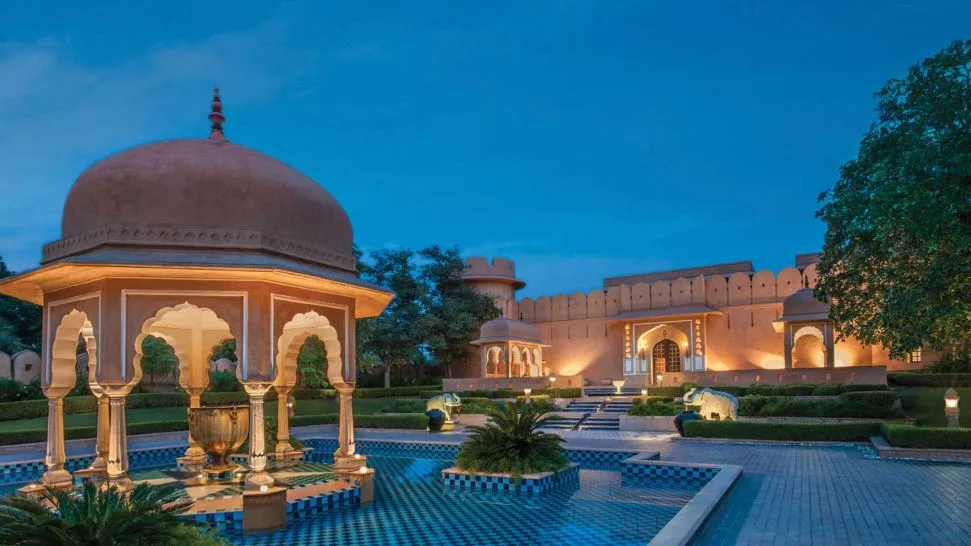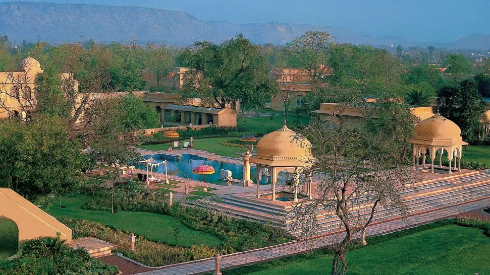 Отель The Oberoi Rajvilas Jaipur 5*, открытый в 1997 году, расположен среди живописного благоустроенного сада площадью 32 акра с фонтанами и водоемами, в 10 км от центра Джайпура и Хава-Махал — «Дворца ветров». От обсерватории Джантар-Мантар и железнодорожного вокзала Джайпура — 14 км, до аэропорта — 20 км. Отель построен в стиле царских дворцов легендарных властителей династии Раджпут, на территории есть пруд с цветущими лотосами и собственный небольшой индуистский храм. Роскошные номера, шатры-люкс с открытыми террасами и уединенные виллы с частными бассейнами удовлетворят вкус самых взыскательных гостей.