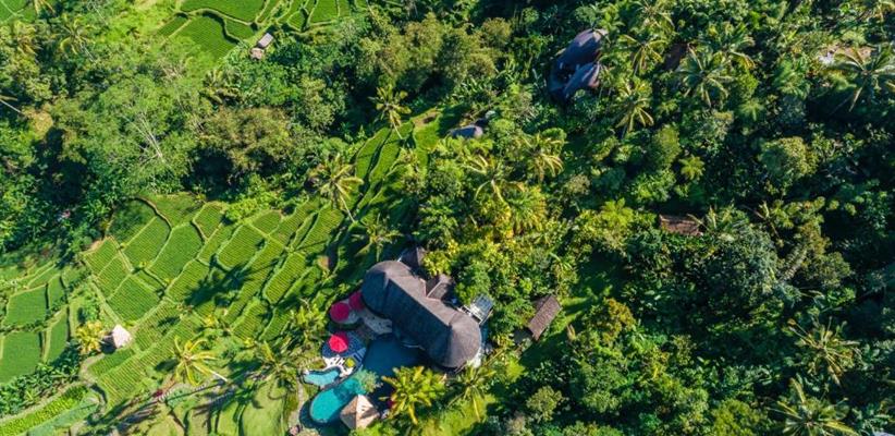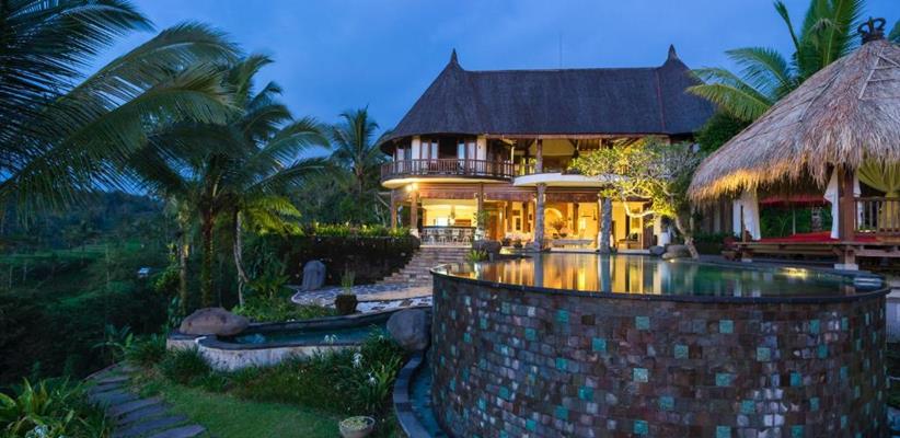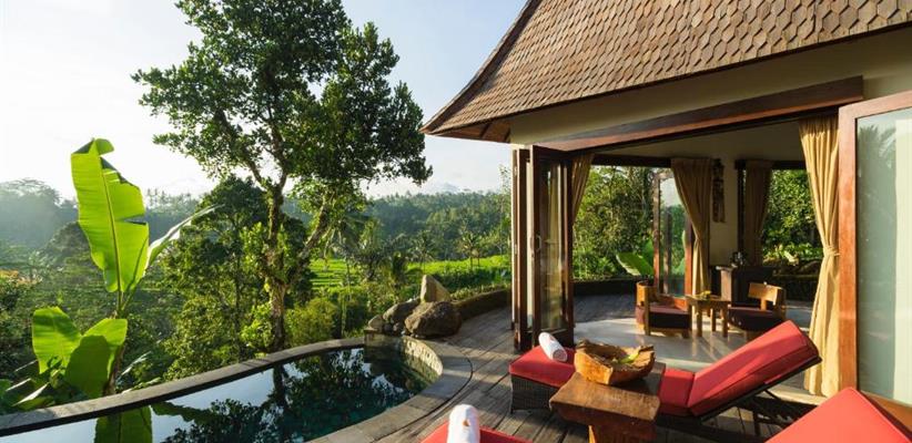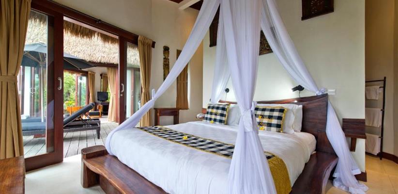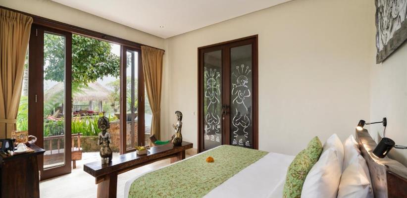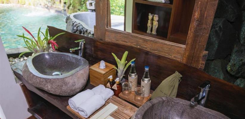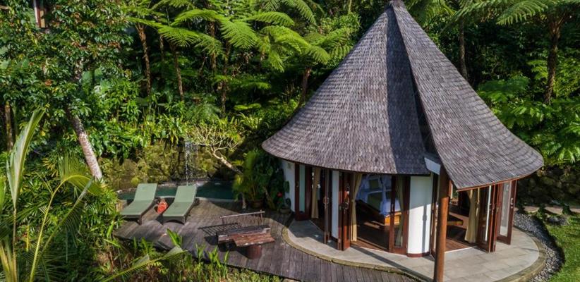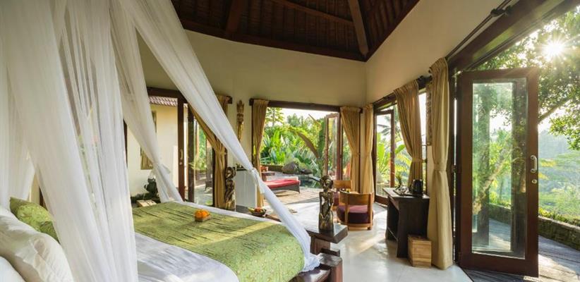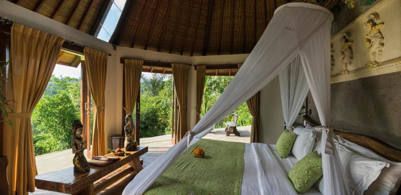 В гостинице, к размещению гостей представлены несколько вилл, каждая из которых, соответствуя легенде, носит имя одной из эпических индуистских богинь, которые восхваляются за их красоту. Каждая вилла уникально разработана балийскими архитекторами, ландшафтными дизайнерами и строителями, чтобы удовлетворить самых взыскательных гостей. Все виллы характеризуются высокими потолками и построены вокруг двадцатиметрового пейзажного бассейна. К бассейну от каждого коттеджа выходит деревянный настил, который является прекрасным местом, чтобы насладиться заходящим солнцем в краткосрочных тропических сумерках, ночным свечением светлячков и мерцанием огней ярких звезд. Во всех номерах имеются панорамные окна от пола до потолка, из которых открывается захватывающий вид на окружающую красоту. Вся мебель сделана из ценных пород деревьев. Ключевой особенностью всех вилл является открытая ванная комната с замурованной в пол глубокой каменной ванной, отделанной максимально художественно, чтобы создать ощущение уединения и романтики. Предоставлено все необходимое: спутниковое телевидение, беспроводной интернет, сейф, фен и косметические принадлежности. Также к каждой вилле прикреплен отдельный дворецкий, который помогает гостям со всеми возникающими вопросами.