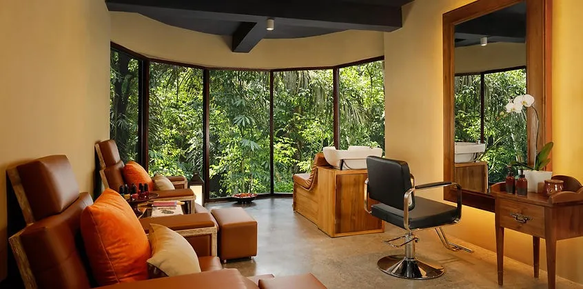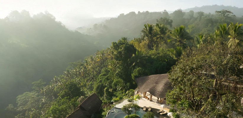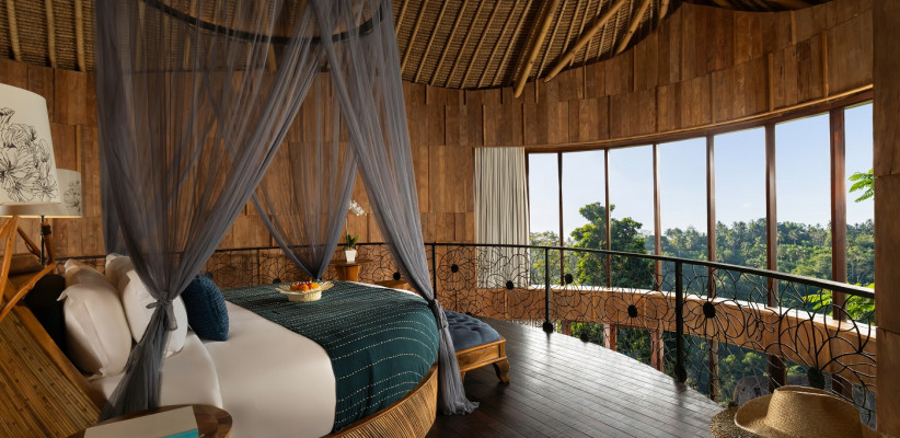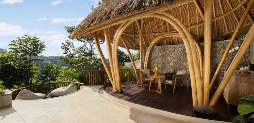 - Расположение отеля на семи уровнях склона холма обеспечивает панорамные виды на лес из каждой виллы.