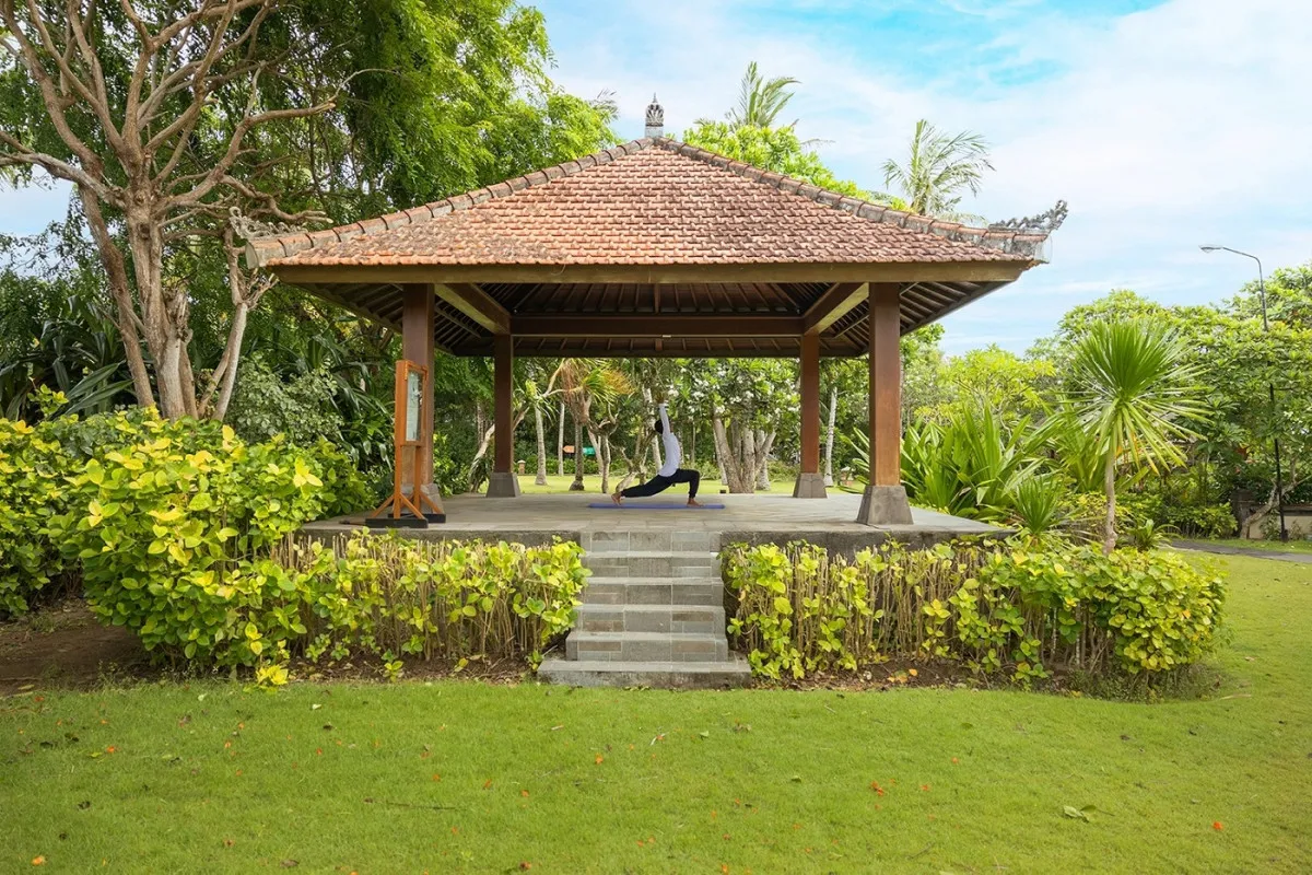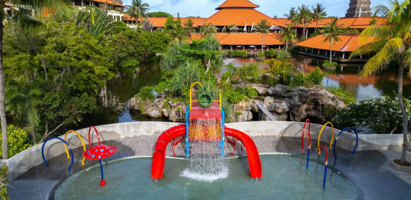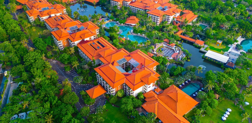 Пятизвездочный отель Ayodya Resort Bali в традиционном балийском стиле расположен на Южном побережье Бали, в курортной зоне Нуса-Дуа. Архитектура курорта органично вписана тропический ландшафт. Территория украшена прудами, каскадными фонтанами и бассейнами в форме лагуны, предлагая комфортные зона отдыха. Для размещения туристов предлагаются просторные номера, элегантно оформленные в национальном стиле. В отеле Ayodya Resort Bali 5* есть тренажерный зал, площадки для сквоша и мини-гольфа, амфитеатр под открытым небом. Для отдыха юных гостей предусмотрены детский клуб с увлекательными занятиями и мастер-классами, водные горки и игровые площадки, предлагаются услуги няни и детское меню в ресторанах.