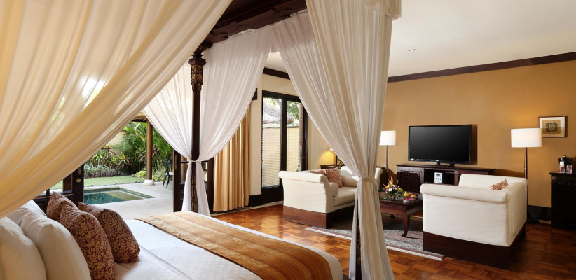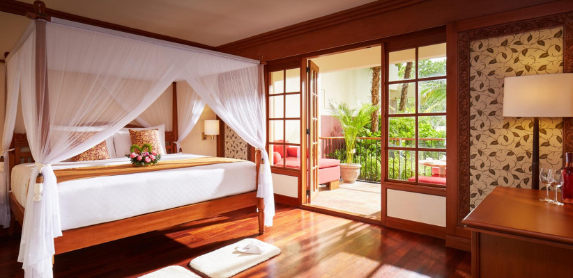 - Просторные номера, оформленные в балийском стиле. С балконов открываются захватывающие виды на сад или лагуну.
