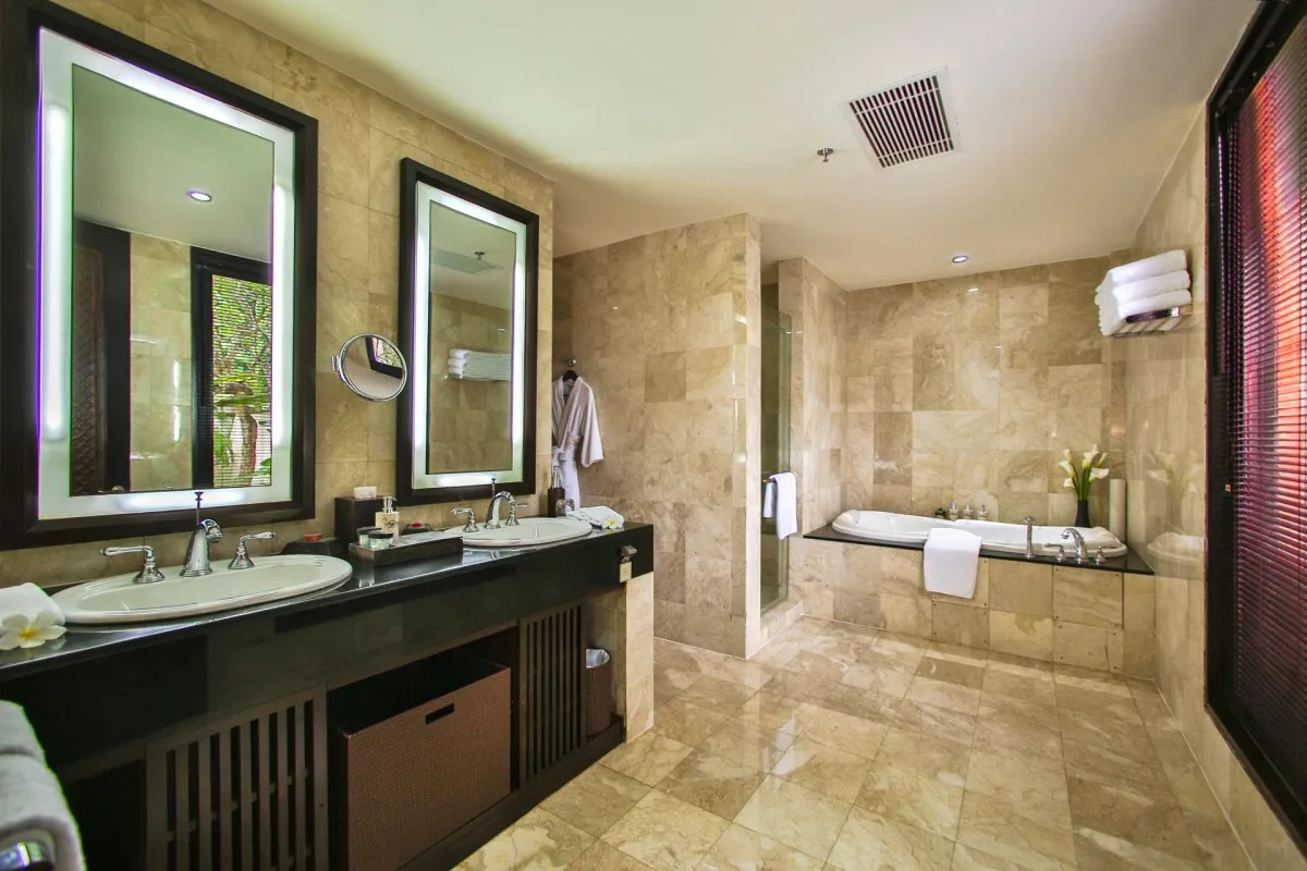 115 м2, балкон с видом на сад, спальня с кроватью king-size, гостиная, ванная комната с ванной и душевой кабиной, гостевой санузел, доступ в лаунж и особые привилегии. Максимальное количество гостей: 2 взрослых и 1 ребенок.Ayodya Villas – виллы «Айодья»