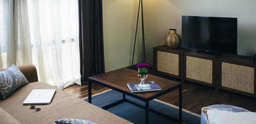 В номерах, каждый из которых оформлен в современном азиатском стиле, есть ванные комнаты с банными и косметическими средствами, кондиционеры, принадлежности для приготовления чая и кофе, мини-холодильники, сейфы, телевизоры со спутниковым TV и бесплатный Wi-Fi, а в некоторых апартаментах имеются джакузи и балкон.