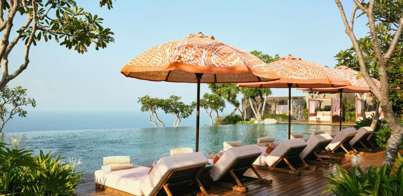 Bulgari Resort Bali 5* – это премиальный курортный отель на Бали, расположенный на южной оконечности полуострова Букит. Он находится на вершине 160-метровой известняковой скалы, а из вилл, особняков и открытых террас открываются виды на Индийский океан. Архитектура курорта объединяет современную итальянскую эстетику с балийскими традициями. В дизайне использованы обработанный вручную вулканический лавовый камень, местные породы дерева и соломенные крыши аланг-аланг. Террасы выполнены в стиле рисовых полей Бали. Отель окружен тропическими садами.