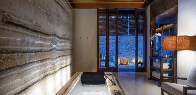 500 м2, вилла с бассейном, двумя спальнями, одной кроватью king-size и двумя двуспальными кроватями, гостиной, двумя ванными комнатами с ванными и душем, а также душем на открытом воздухе. Доступно размещение дополнительной кровати за отдельную плату. Максимальное количество гостей: 6 взрослых или 4 взрослых и 2 ребенка младше 6 лет.The Bvlgari Villa – вилла «Булгари»