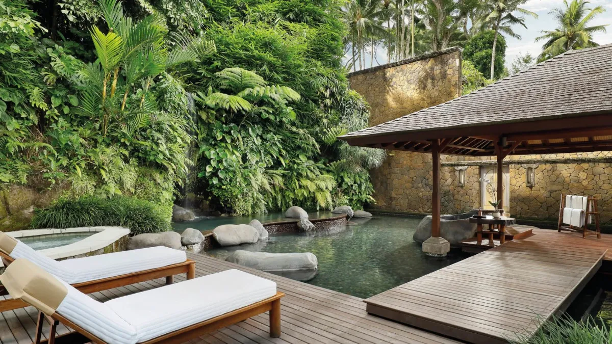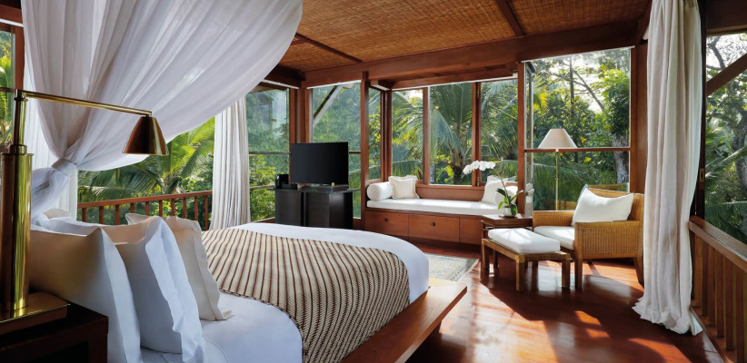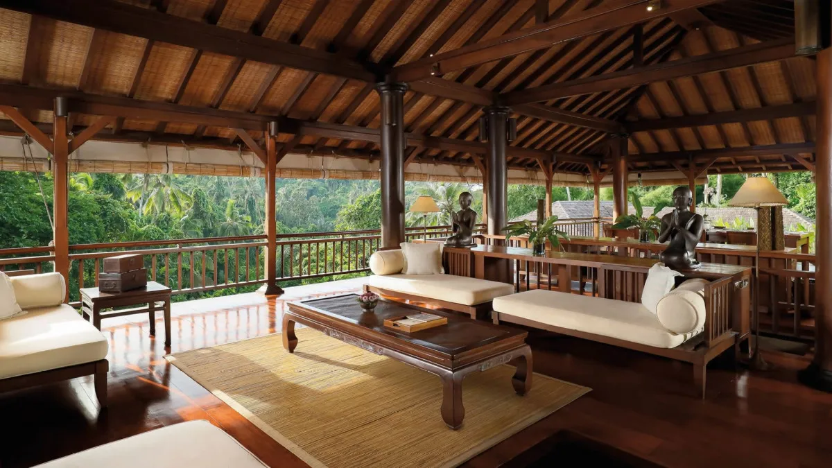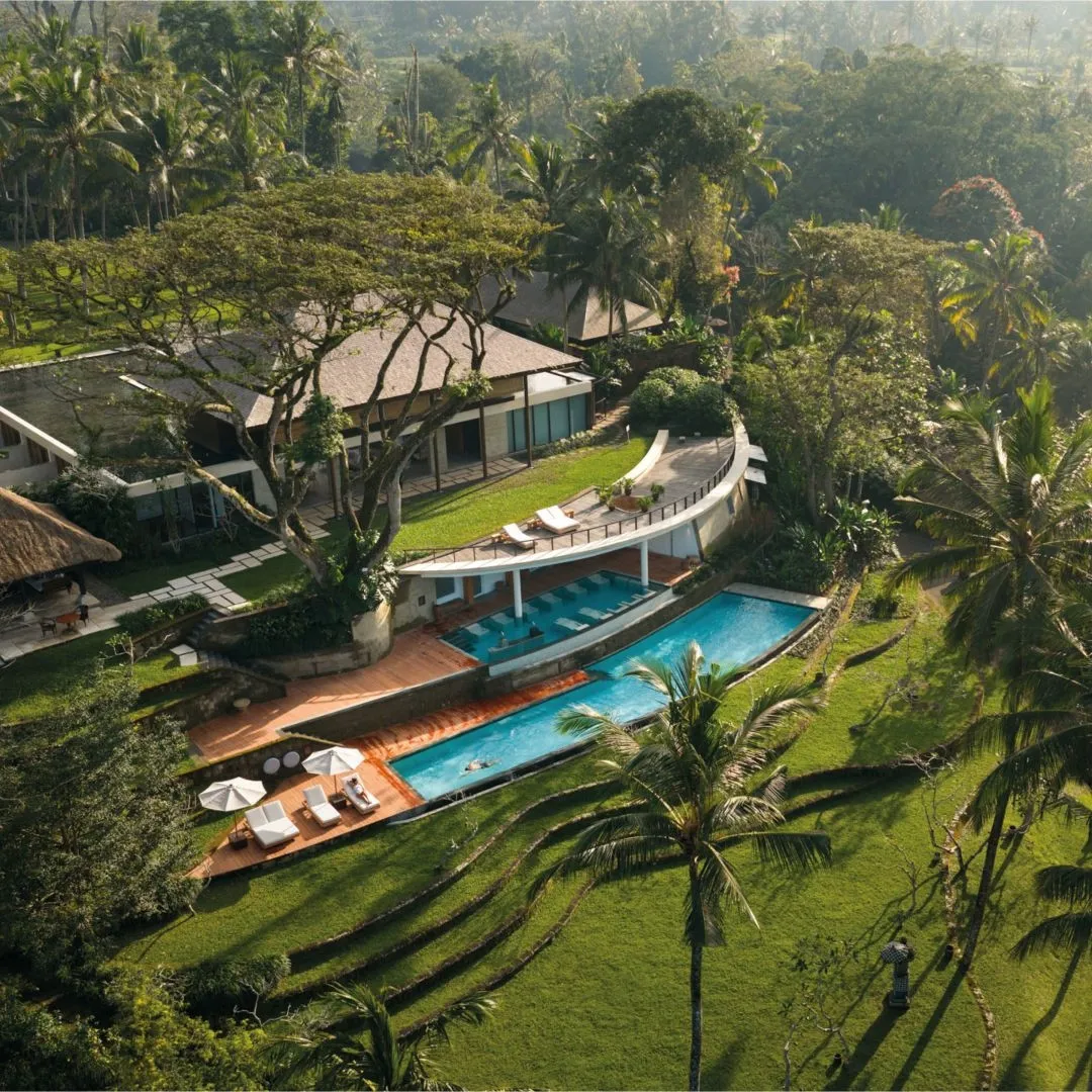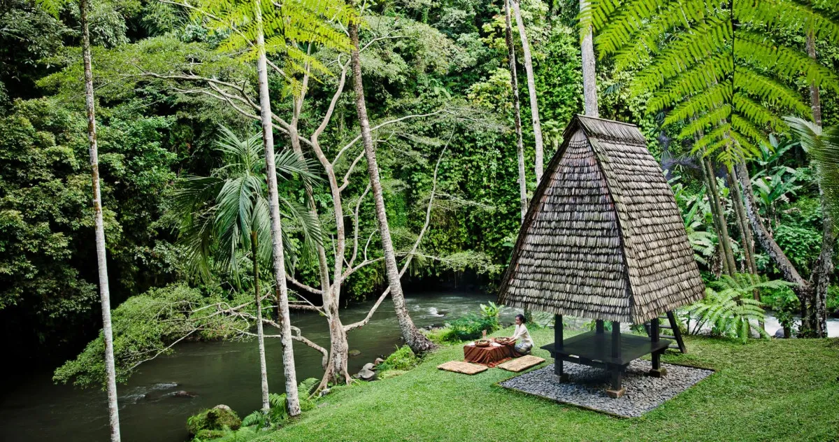 Над стилем отеля Como Shambala Estate 5* работали архитектор Чонг Ю Куан и дизайнер интерьеров Коитиро Икебучи. Они использовали местные камень и дерево, создав современные изысканные пространства под традиционными кровлями из древесины аланг-аланг. Отель организует пешие экскурсии по джунглям, рисовым полям и к местным храмам для духовного преображения гостей, а также пикники в лесу. Туристам доступны бассейны с родниковой водой и различные пространства для организации свадеб: рестораны, зеленый амфитеатр, водный сад, резиденции.