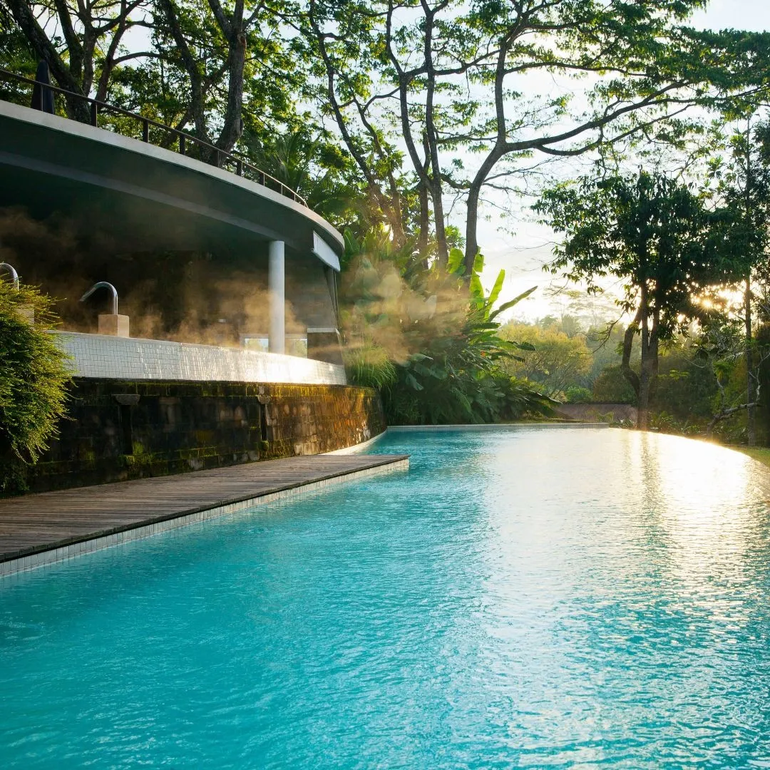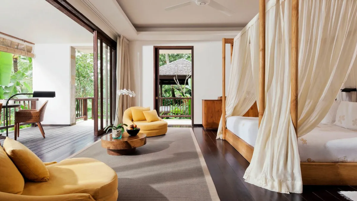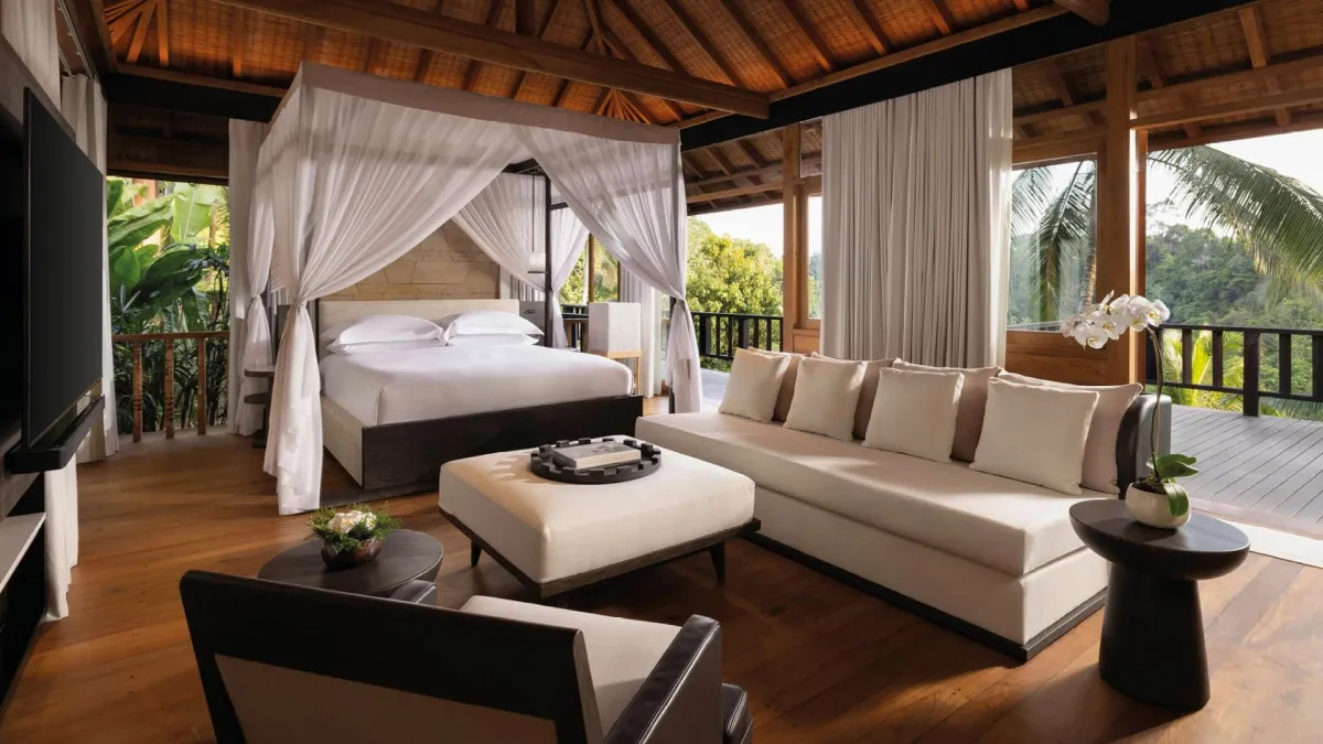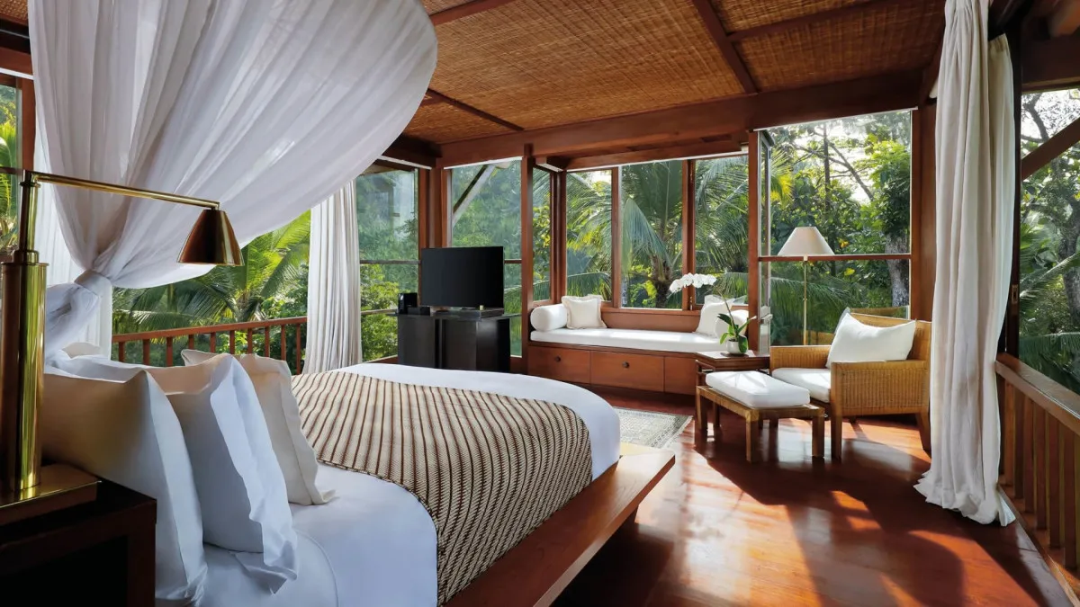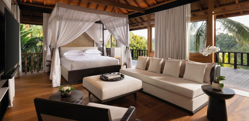 Над стилем отеля Como Shambala Estate 5* работали архитектор Чонг Ю Куан и дизайнер интерьеров Коитиро Икебучи. Они использовали местные камень и дерево, создав современные изысканные пространства под традиционными кровлями из древесины аланг-аланг. Отель организует пешие экскурсии по джунглям, рисовым полям и к местным храмам для духовного преображения гостей, а также пикники в лесу. Туристам доступны бассейны с родниковой водой и различные пространства для организации свадеб: рестораны, зеленый амфитеатр, водный сад, резиденции.