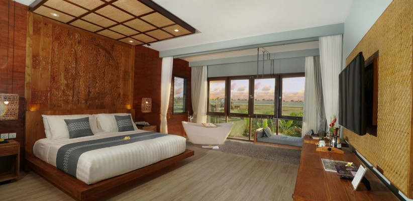 Комплекс включает просторные виллы и номера, оформленные в современном стиле с элементами традиционного балийского декора. На каждой вилле есть просторная спальня, ванная комната и открытая терраса, а многие предлагают собственные бассейны или прямой выход к общему лагунному бассейну.