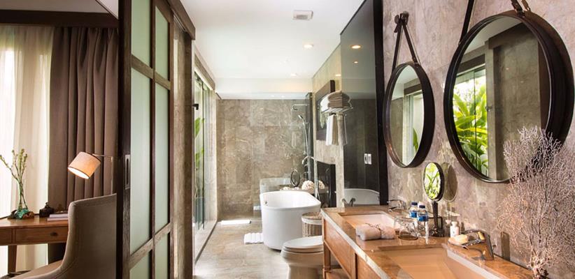 В каждом из 8 номеров и вилл есть терраса, ванная, фен, кондиционер, мини-бар, небольшой холодильник, телефон, сейф, телевизор со спутниковым телевидением, а к некоторым домикам примыкает частный бассейн.
