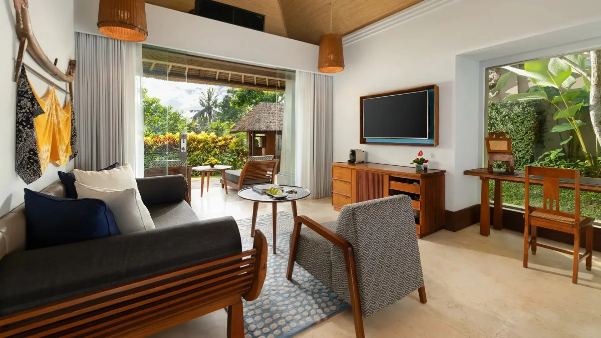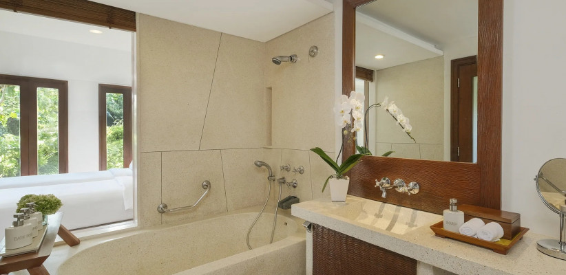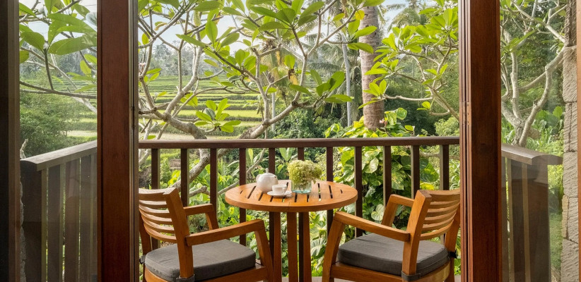 56 м2, угловой номер с двумя балконами, видом на рисовые поля или реку Петану, одной кроватью king-size или двумя односпальными кроватями, ванной и тропическим душем в ванной комнате. Доступно размещение дополнительной кровати за отдельную плату. Максимальное количество гостей: 4 взрослых.Heavenly Jacuzzi Villa – райская вилла с джакузи
