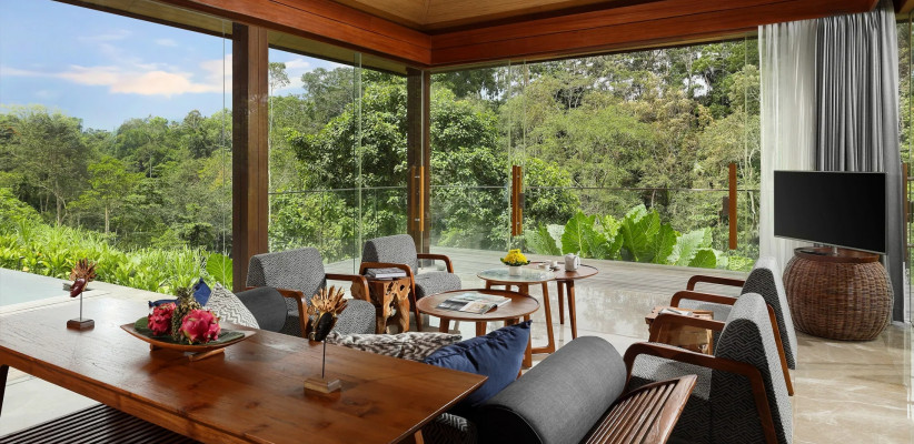 48 м2, номер с балконом, видом на долину или рисовые террасы, одной кроватью king-size или двумя односпальными кроватями, ванной и тропическим душем в ванной комнате. Доступны смежные номера. Доступно размещение дополнительной кровати за отдельную плату. Максимальное количество гостей: 4 взрослых.Impressive Forest Corner Suite – впечатляющий угловой люкс с видом на лес