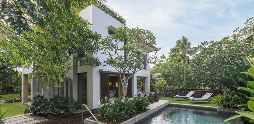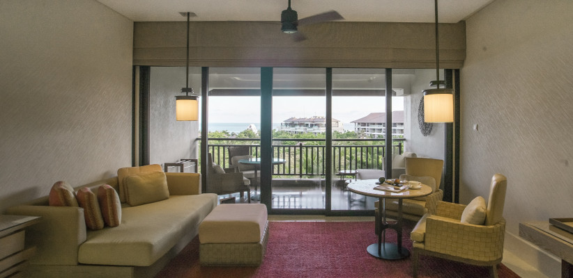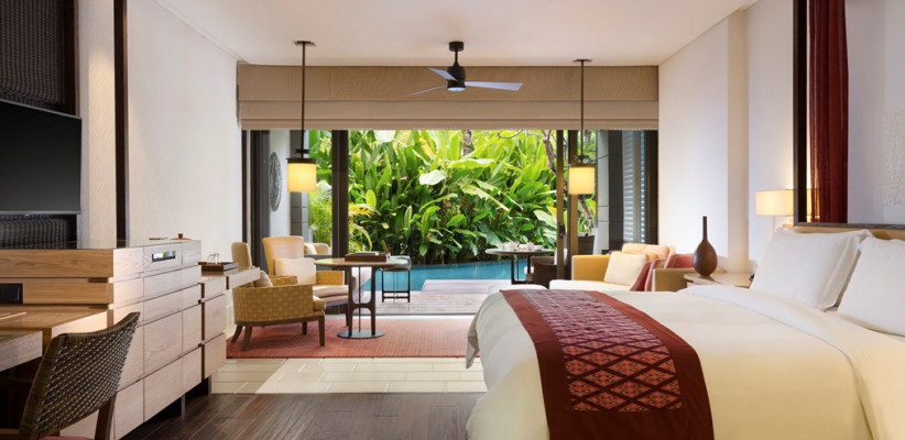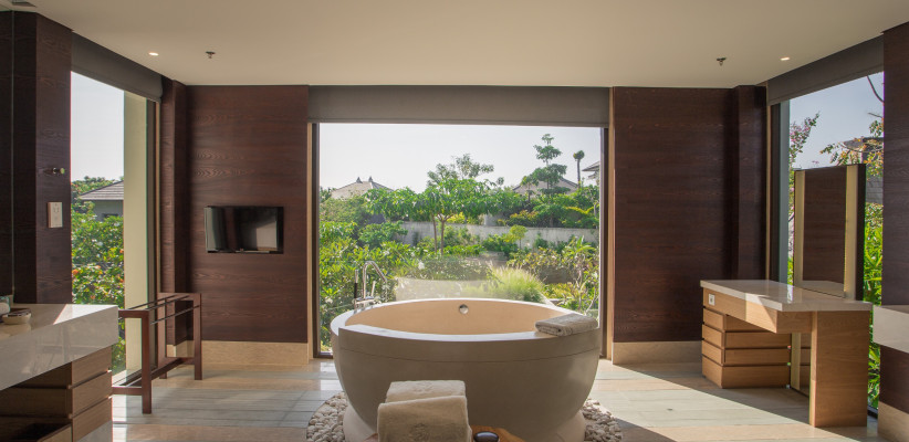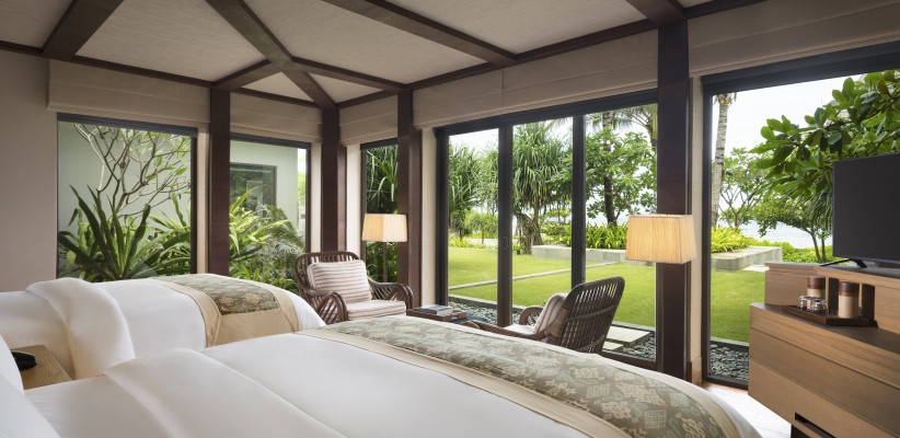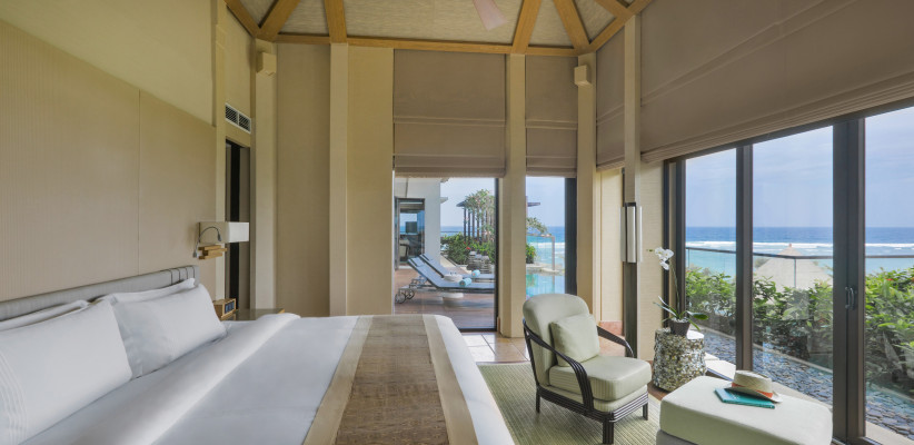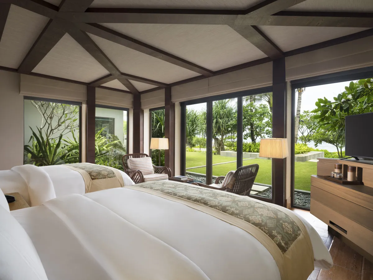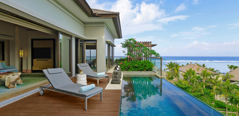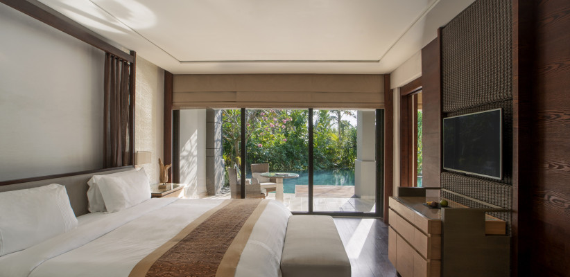 Одной из ключевых особенностей The Ritz-Carlton, Bali является широкий выбор форматов размещения. Курорт включает 313 просторных сьютов и вилл с продуманными планировками и роскошным дизайнерским интерьером, дополненным традиционными балийскими акцентами. В отделке используются натуральное дерево ручной полировки, рельефная штукатурка, изысканные текстильные материалы и локальные арт-объекты. Архитектурная концепция обеспечивает высокий уровень приватности: сьюты размещены в нескольких зданиях на комфортном расстоянии друг от друга, виллы расположены в уединенных зонах курорта.