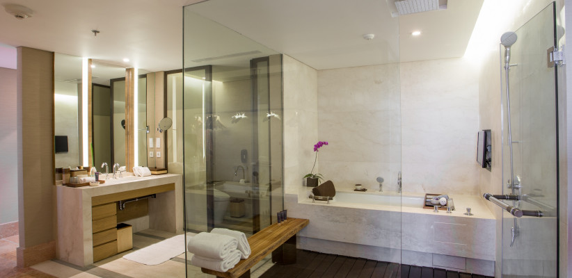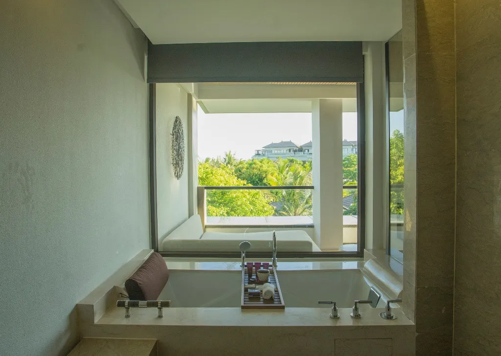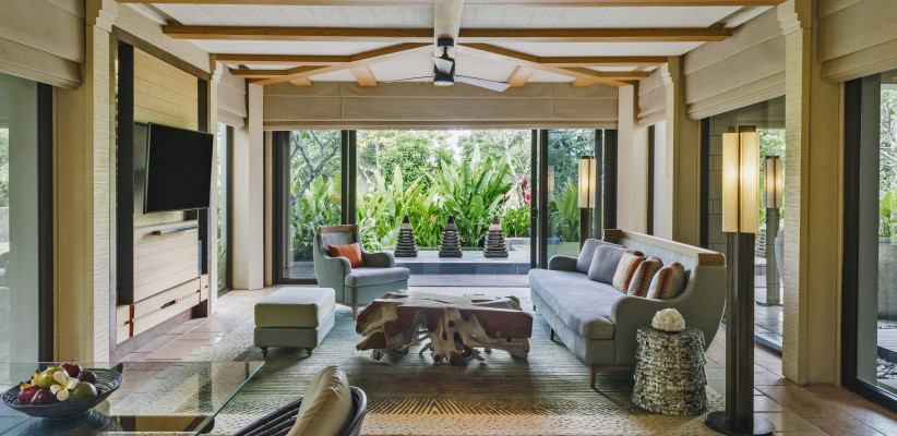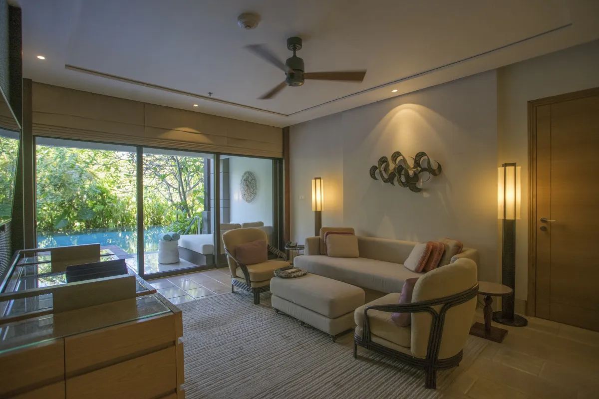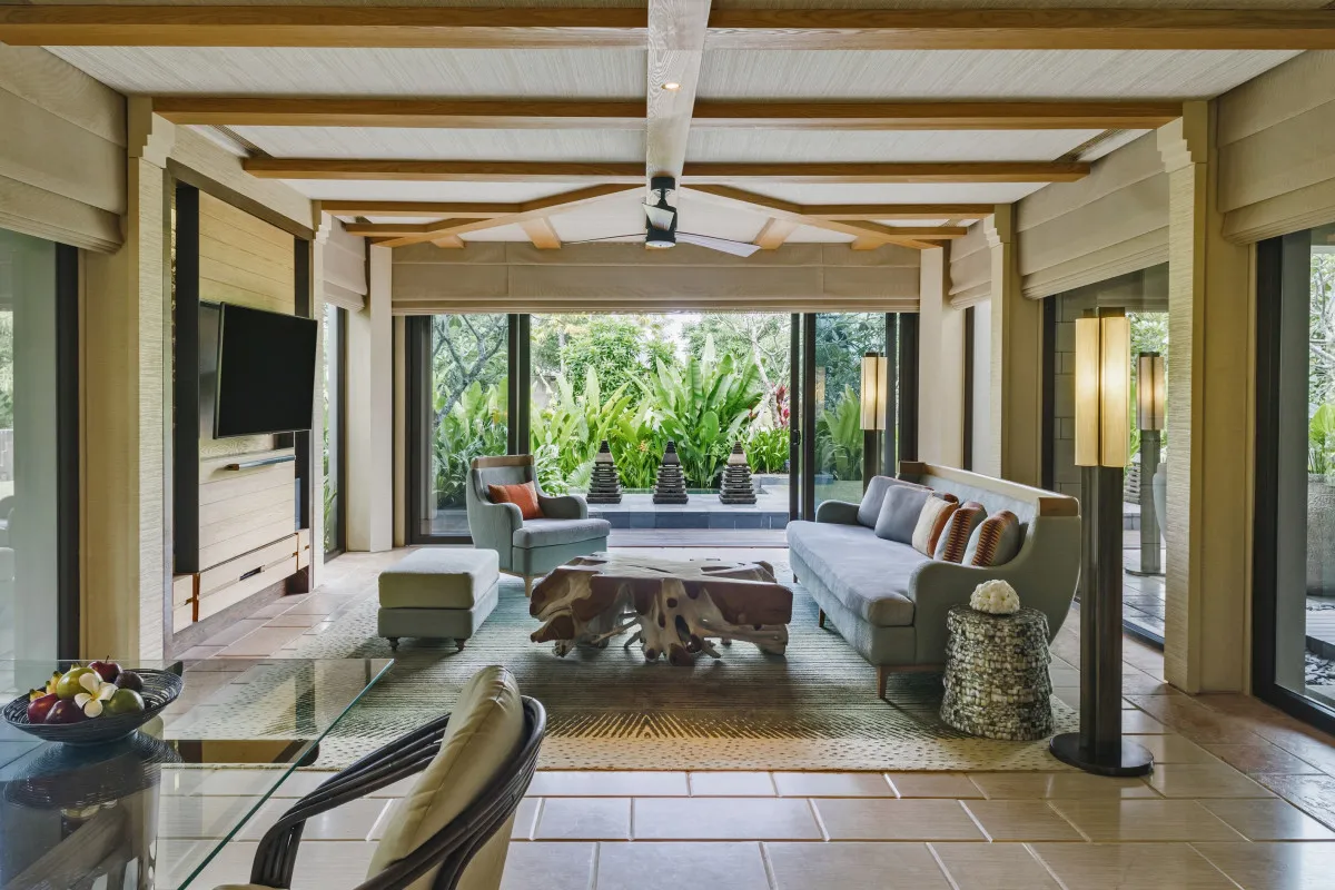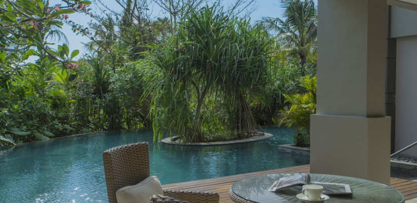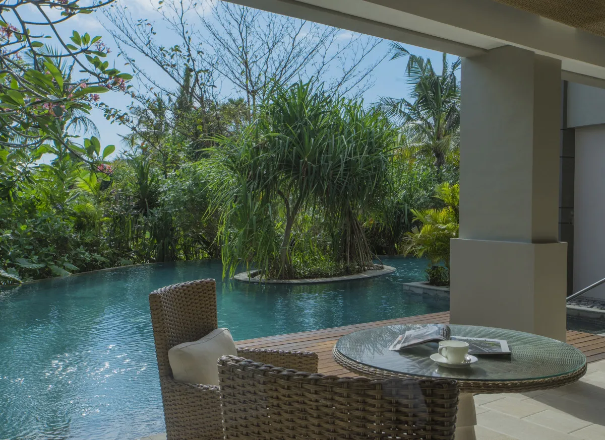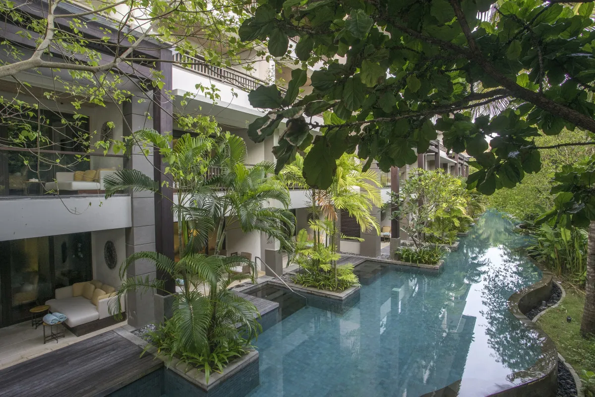В отеле представлено 313 просторных сьютов и вилл с удобными планировками и роскошными дизайнерскими интерьерами с традиционными балийскими акцентами – натуральным деревом ручной полировки, рельефной штукатуркой, текстильными материалами премиального уровня и локальными арт-объектами.Sawangan Junior Suite
