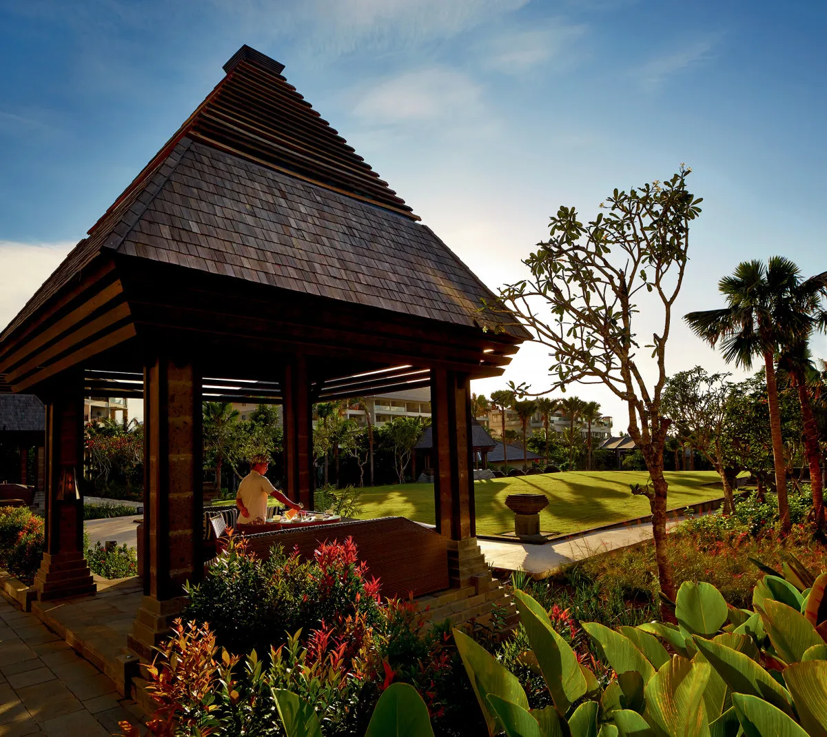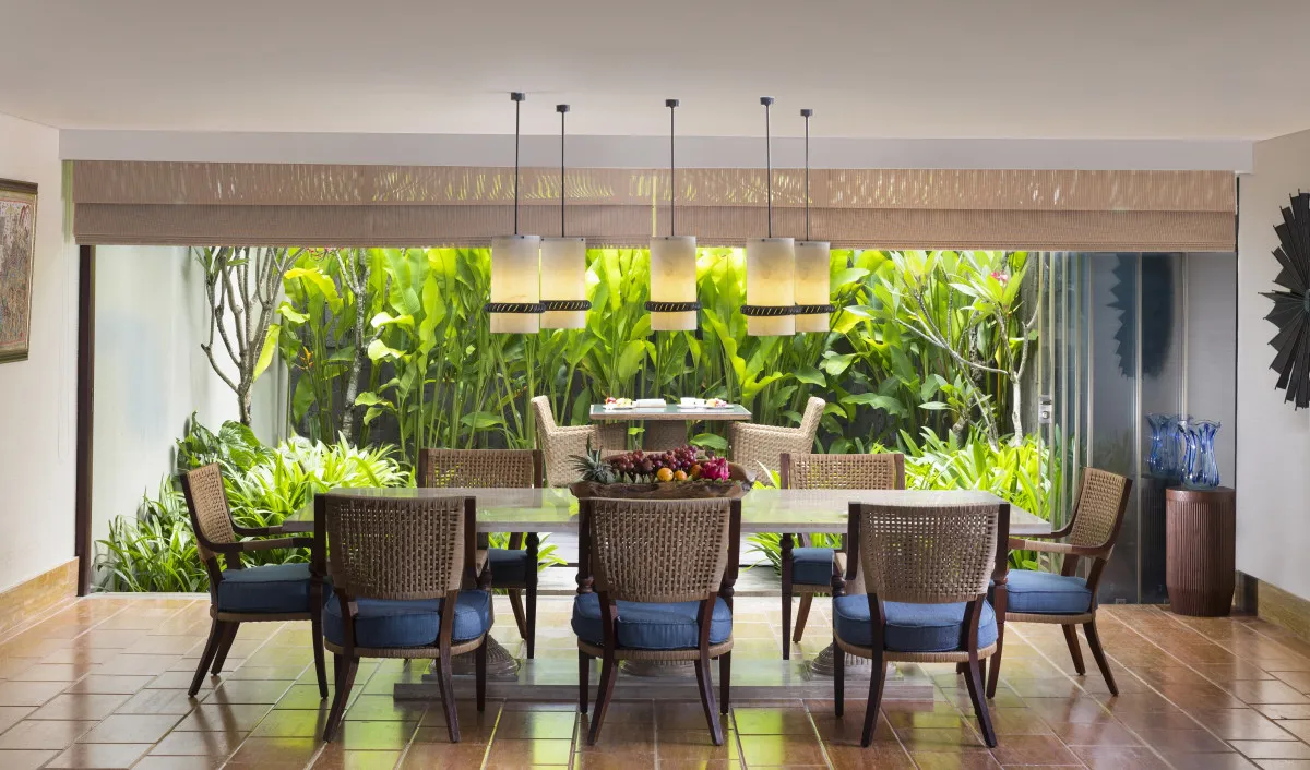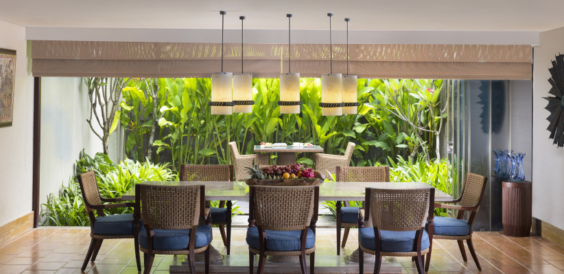 - Senses – ресторан для завтраков в формате шведского стола с блюдами европейской, китайской и индонезийской кухни, зонами в зале, на открытом воздухе и в уединённых беседках
