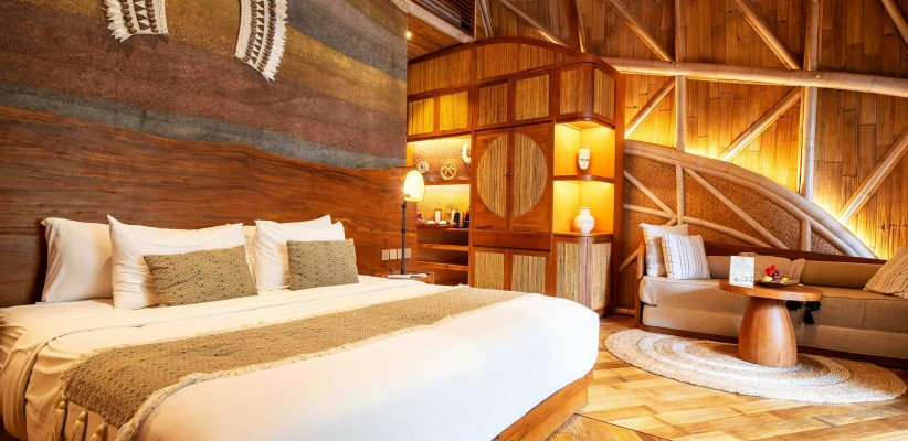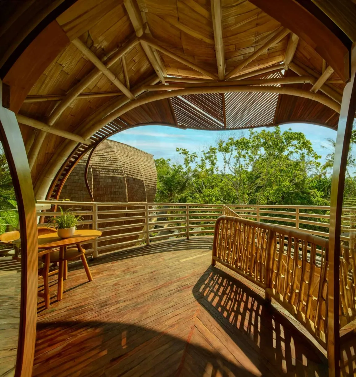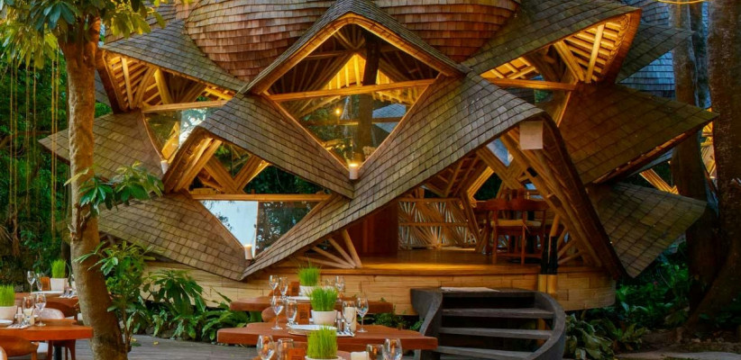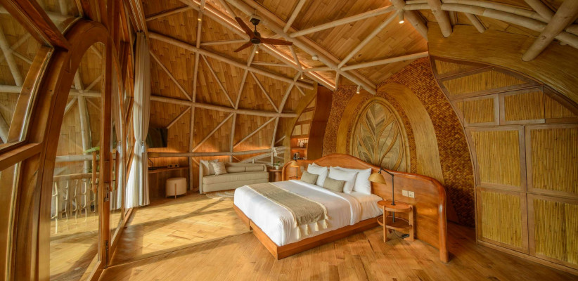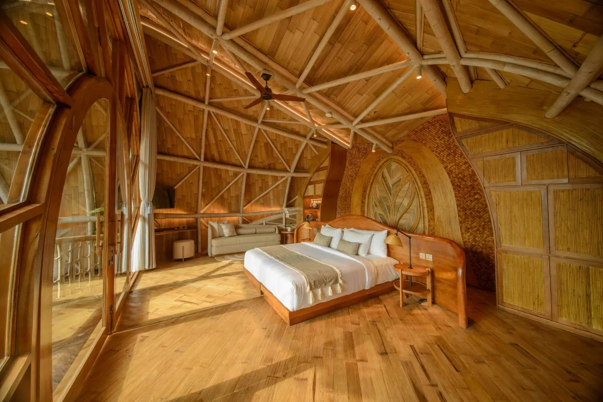 - Расположенный на лоне природы экоотель располагает необычными бамбуковыми виллами, поражающими воображение гостей.