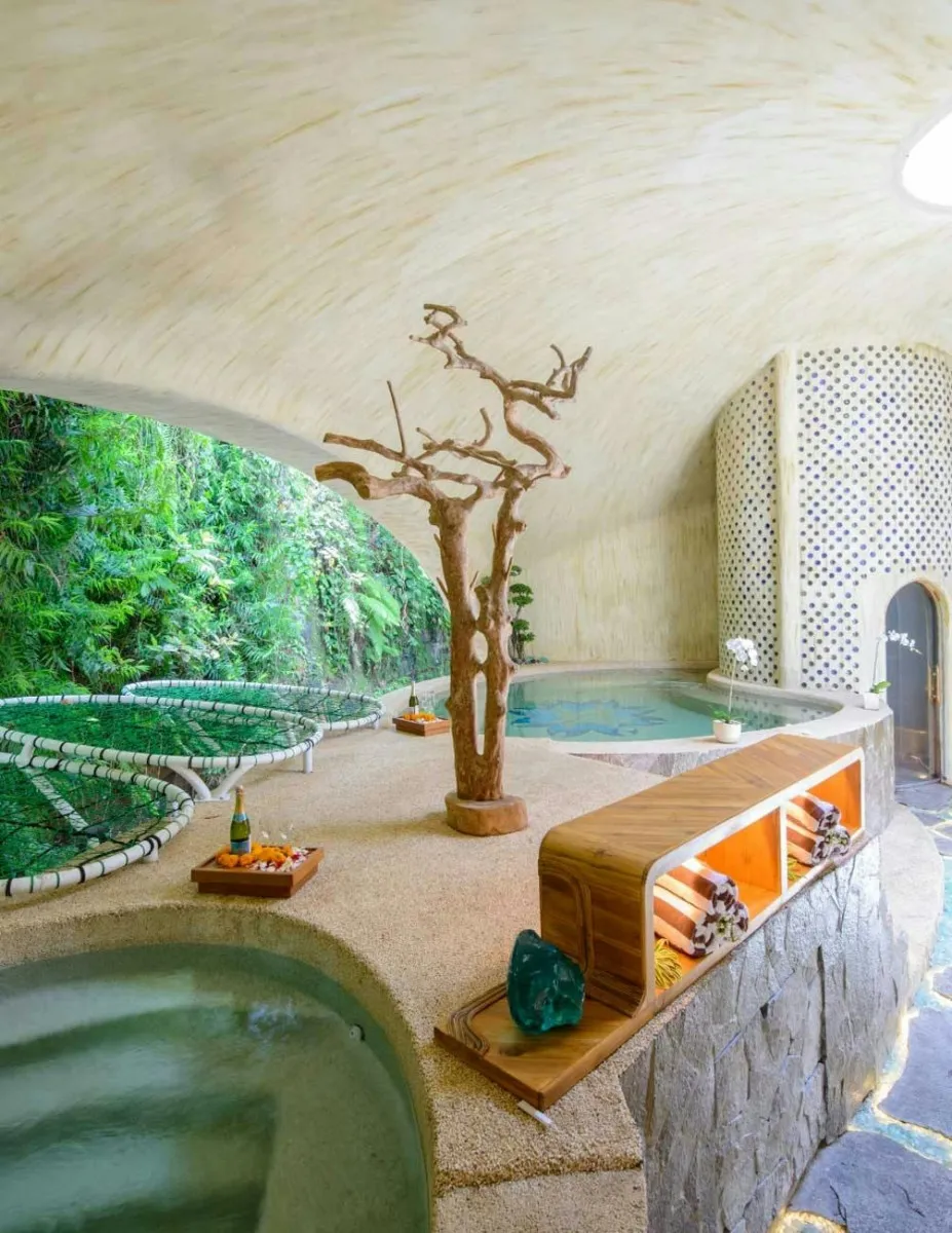 - 2 открытых инфинити-бассейна с морской водой: двухуровневый с водопадом, «джунглевый» с видом на реку Уламан