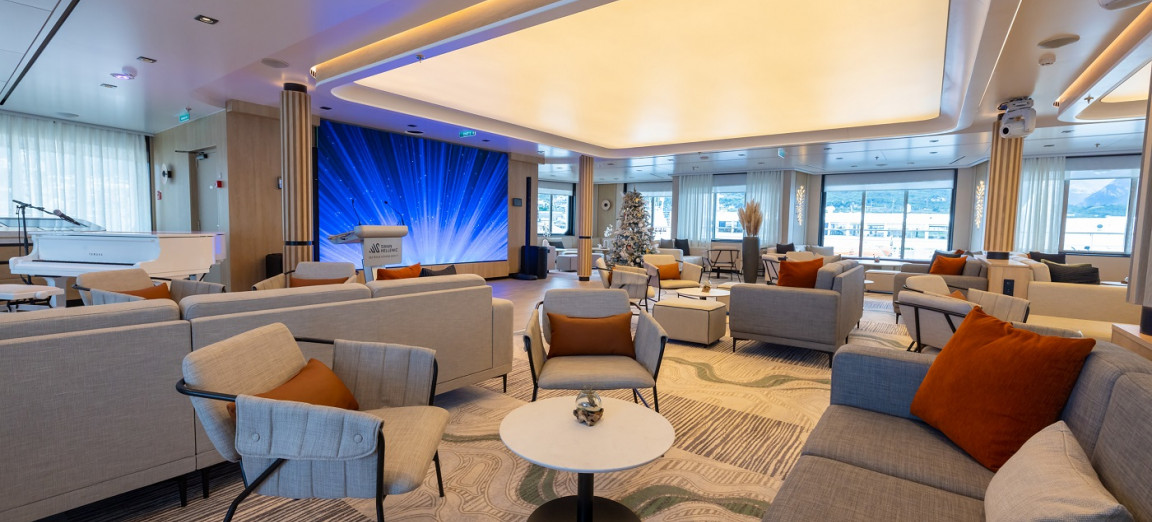 - панорамный лаунж – этот просторный лаунж предназначен для проведения брифингов, лекций, презентаций, выступлений профессиональных музыкантов и певцов и камерных концертов во время круиза