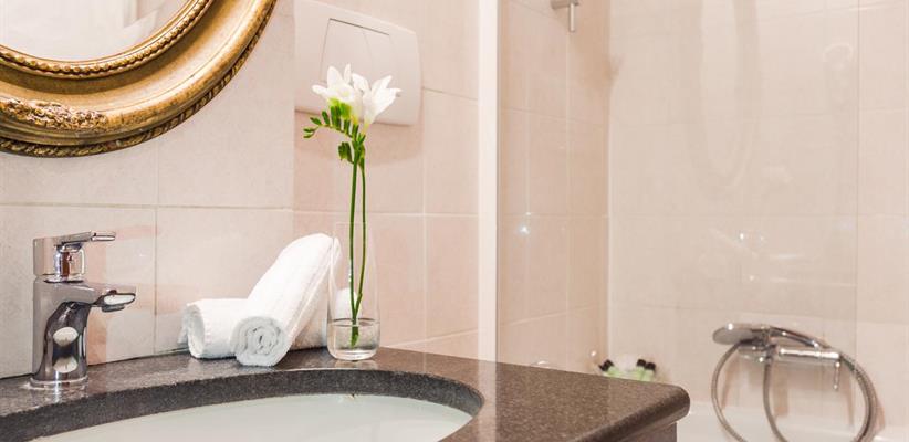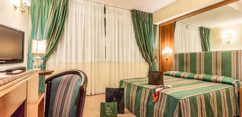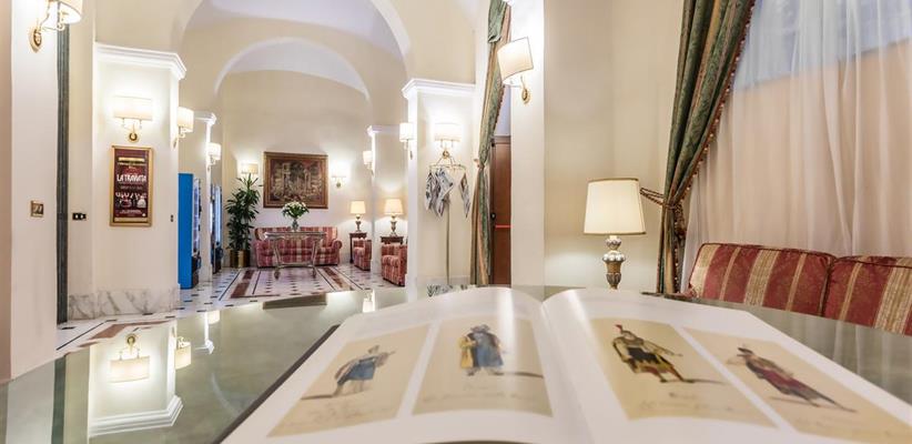 Интерьеры отеля оформлены в стилистике историзма, светлый холл обставлен изысканной добротной мебелью. Несмотря на то, что есть лифт, наверх ведет белая мраморная лестница, белые коридоры с круглыми зеркалами в золотых рамах напоминают иллюминаторы огромного фешенебельного парохода. В обстановке номеров соблюдена та же буржуазная солидность с налетом эклектики: цельнодеревянная мебель – цвета палисандра, портьеры и покрывала на кроватях – в старинном флорентийском стиле, как и очаровательные ширмы, благородные ковры украшают полы и стены. Но за этим фасадом в наличии весь классический набор удобств – мини-бары и ванные комнаты с феном и туалетными принадлежностями, Wi-Fi и ЖК-телевизоры. Все покои обязательно оснащены кондиционерами.