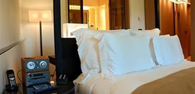 эксклюзивный люкс. В номере: двуспальная кровать, постельное белье ручной работы, столик, ванная комната.Deluxe Suite