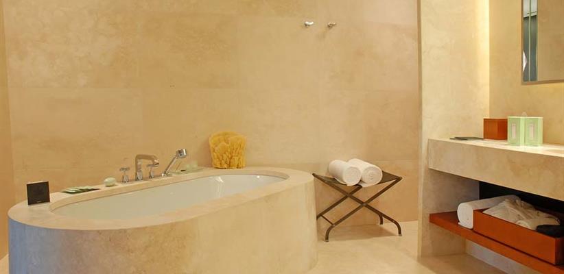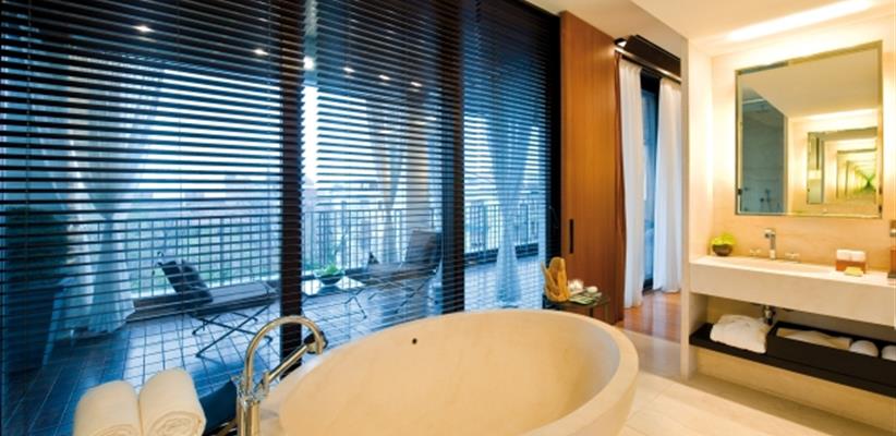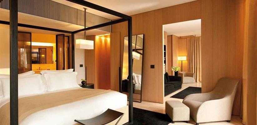 100 м2, с видом на сад. В номере: спальня с двуспальной кроватью, гостиная, диван, гардеробная, обеденная зона, ванная комната с душем и ванной. Максимальное количество гостей: 6.The Bvlgari Suite