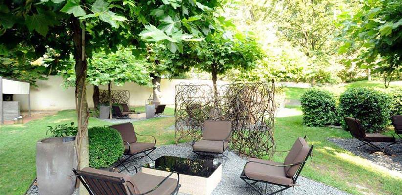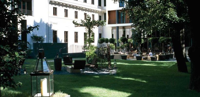 За строгим элегантным фасадом отеля скрывается настоящий оазис спокойствия – частный сад площадью 4 000 м2. Он органично продолжает близлежащий Ботанический сад дворца Брера и дарит туристам редкую возможность отдохнуть от городского ритма жизни.