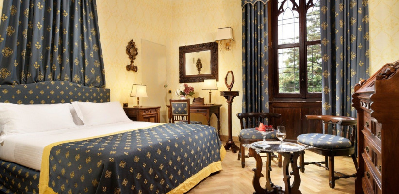 Castello Dal Pozzo – исторический отель, расположенный в живописной загородной местности с изысканным интерьером и современными удобствами, идеально сочетающий комфорт и атмосферу старинного замка. Номера оформлены в неоготическом стиле. Отель находится примерно в 35 километрах от аэропорта Мальпенса.
