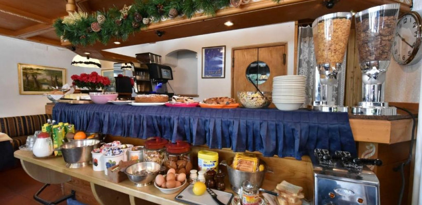 Зал для завтраков – с панорамными окнами, где подают континентальный и итальянский завтрак с домашней выпечкой и продуктами местных ферм.