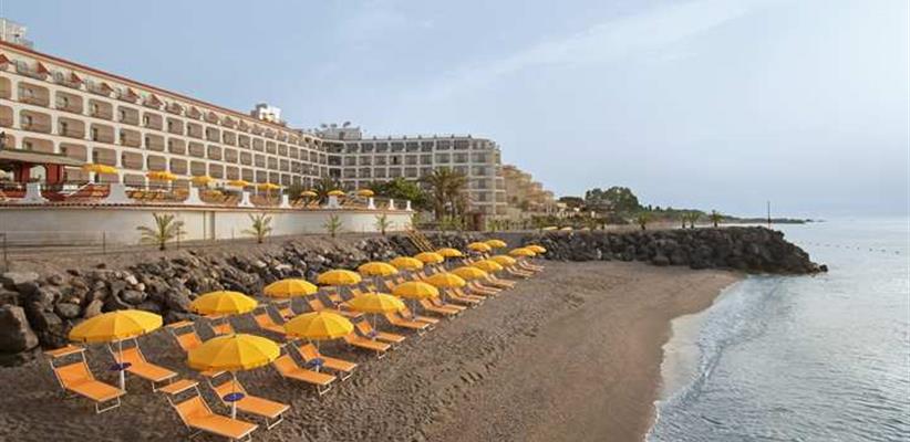 “Hilton Giardini Naxos” – 5-звездочный отель на итальянском побережье острова Сицилия. Отель принадлежит крупной сети отелей Hilton Hotels & Resorts. Территория отеля представляет собой тропический сад. Берег острова омывается Ионическим морем. Пользование подключением к сети Wi-Fi предоставляется за отдельную плату. Для постояльцев с автомобилями предусмотрена частная платная парковка. В отеле можно взять напрокат автомобиль. Для людей с ограниченными возможностями предусмотрены все удобства. Отель предоставляет V.I.P. услуги.