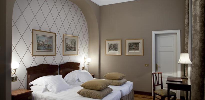 - Эксклюзивный номерной фонд – 72 номера и 23 люкса, каждый со своим дизайном и планировкой; главный люкс – бывшая резиденция Джузеппе Верди.