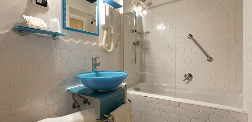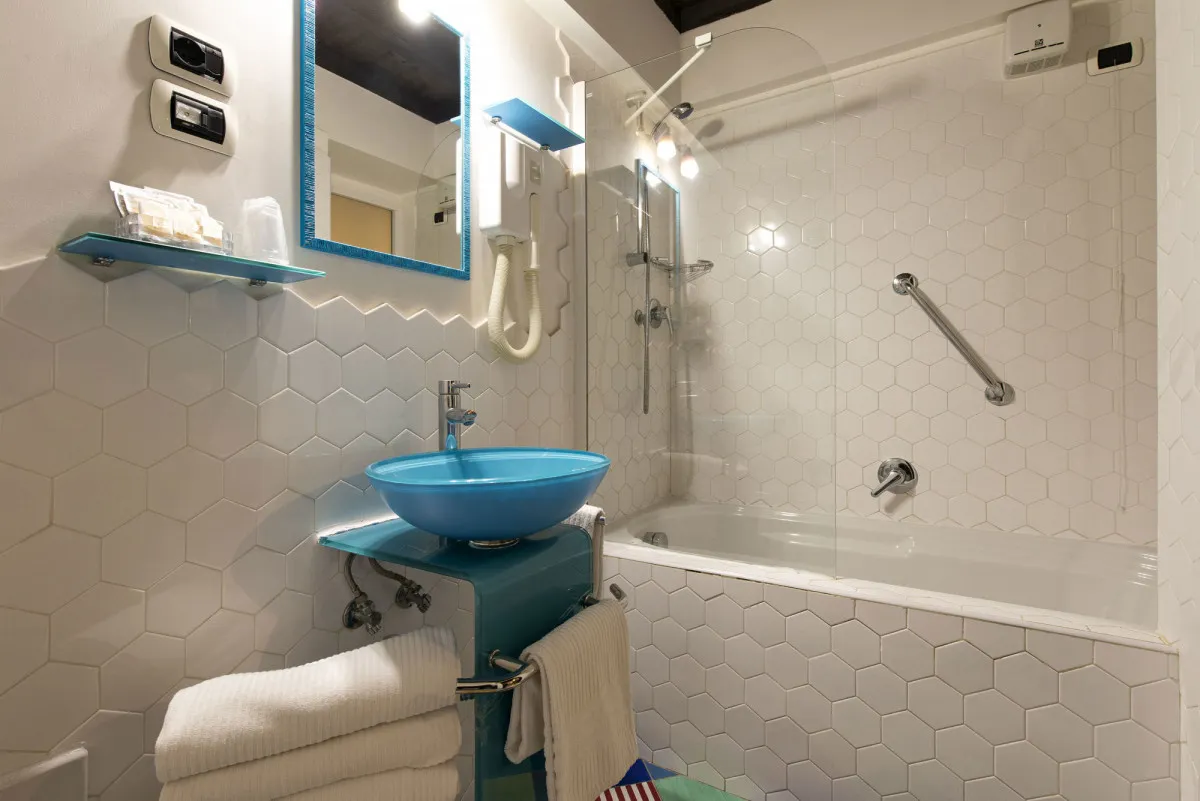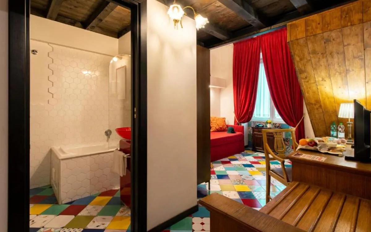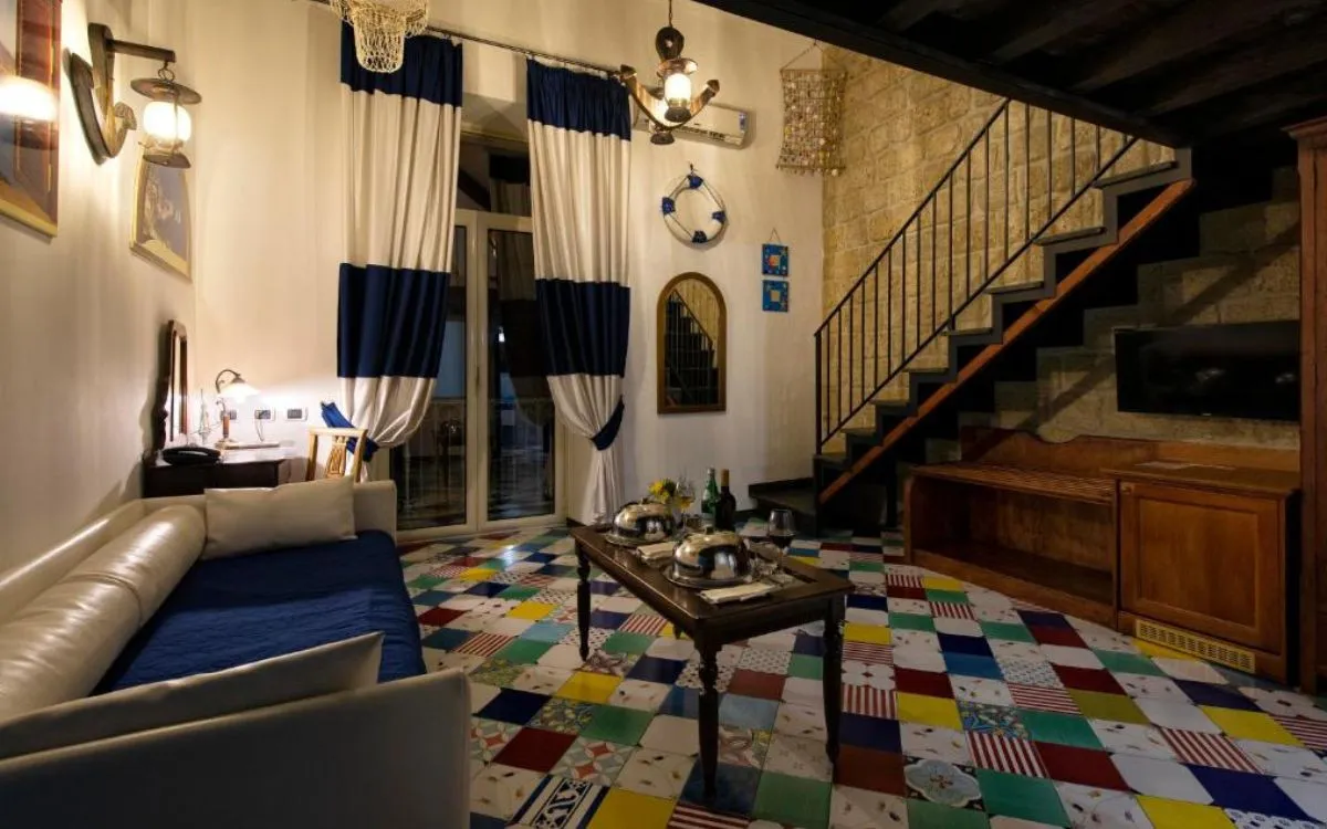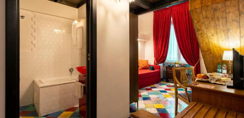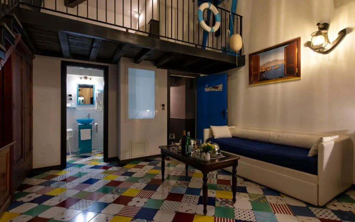 Для ценителей аутентичного городского колорита предлагаются номера Junior Suite, а также апартаменты в стиле неаполитанских «бассов», расположенные на первом этаже с выходом на улицу. Оформление выполнено с использованием цветной мраморной плитки, художественных элементов и теплой палитры, отражающей традиции Неаполя.