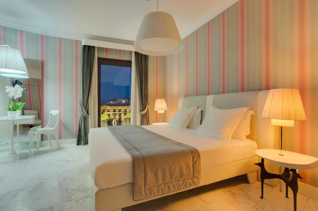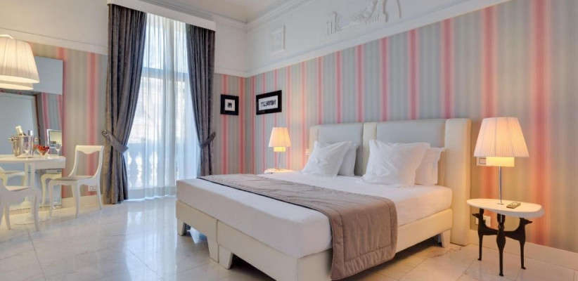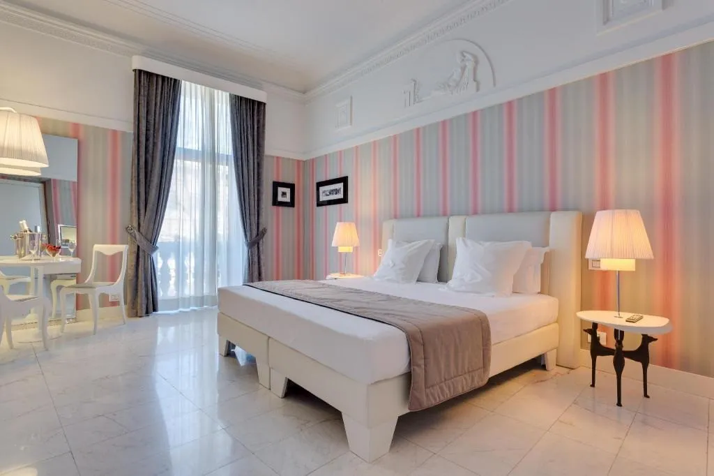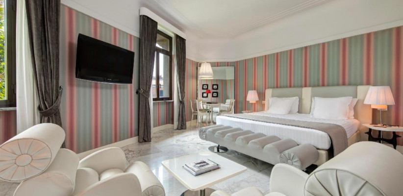 Grand Hotel Palace расположен на Via Vittorio Veneto, в исторической части Рима вблизи известных улиц и арт-декадного квартала. Отель занимает здание с богатой архитектурной историей, реконструированное и модернизированное, предлагая номера с классическими и современными удобствами, ресторан и бар, а также фитнес- и wellness-инфраструктуру. Отсюда удобно добираться пешком или на общественном транспорте к основным достопримечательностям Рима.