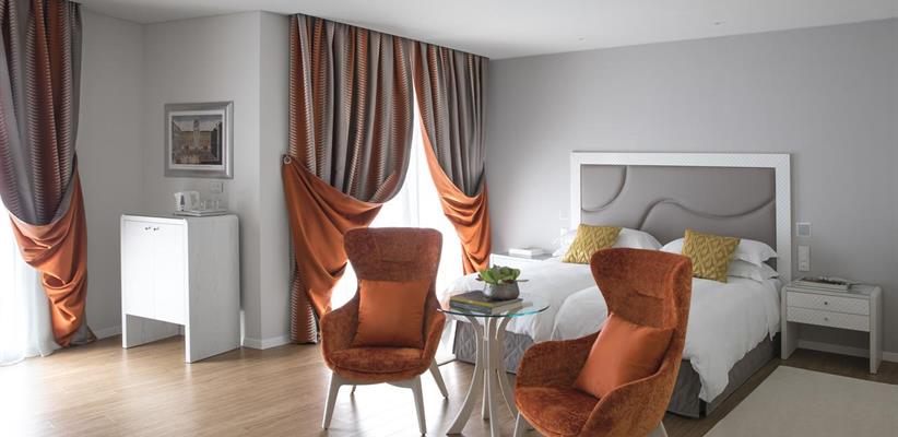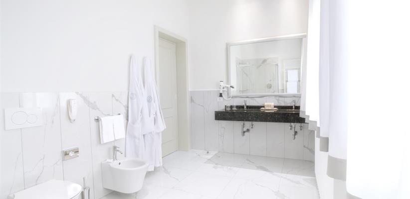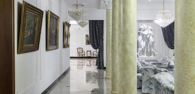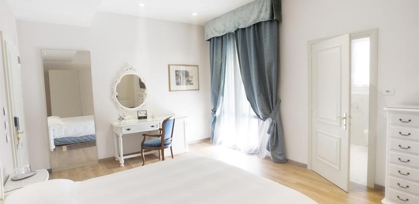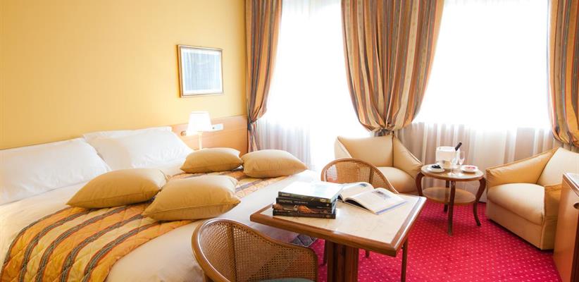 Лифты доставляют постояльцев на этажи, где всегда готовы к приему жильцов двести двадцать номеров. Обстановка не лишена помпезности, поскольку мебель очень напоминает антикварную: резьба, солидность форм, монументальность. Классические и исторические номера ждут постояльцев в старинном корпусе, в некоторых останавливались известные генералы Диац, Сципиони и Бадольо. В отличие от полулюксов, здесь не ограничились мягким уголком: отдельная гостиная обставлена элегантным гарнитуром, а в спальне стоит широкая кровать. В номере Диаца с фасадной стороны имеется балкон с шезлонгами возле небольшого столика.