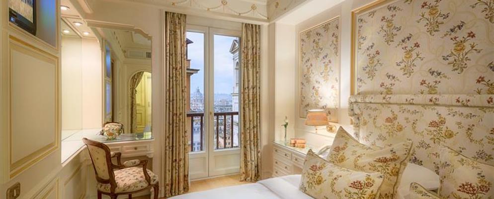60 м2, люкс с видом на город и сады виллы Боргезе, одной кроватью king-size, гостиной, мраморной ванной комнатой. Доступно размещение дополнительной односпальной кровати. Максимальное количество гостей: 3.Grand Deluxe Suite Hassler