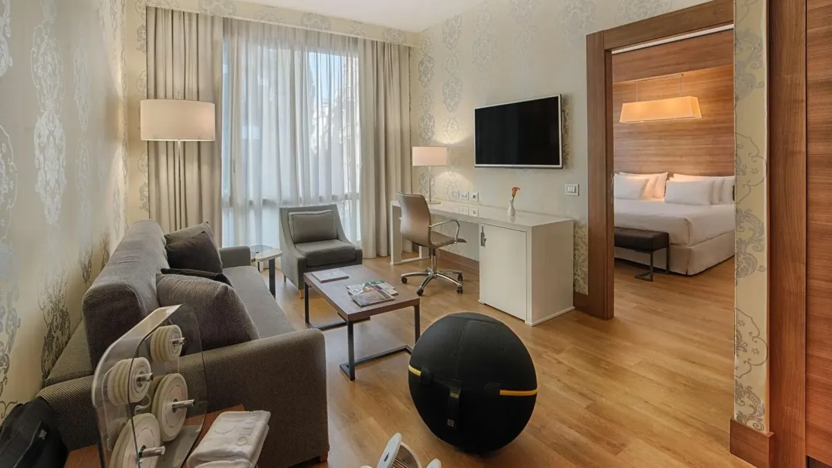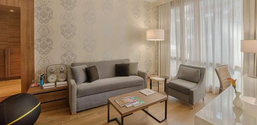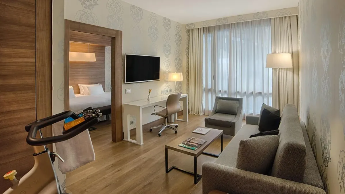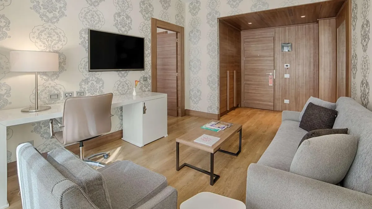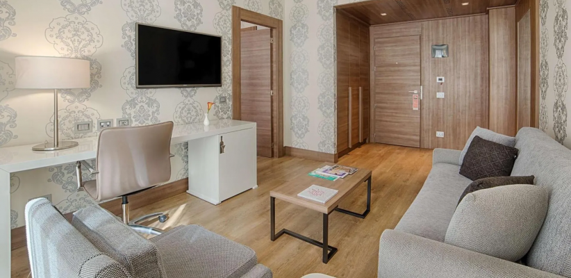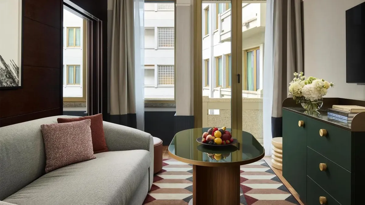 35 м2, балкон/ терраса, вид на город/ Дуомо, двуспальная кровать или две односпальные кровати, гостиная зона. Количество гостей: 2 + 1Junior Suite Executive