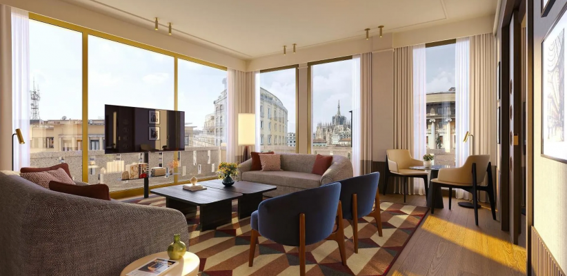 69 м2, балкон/ терраса, вид на город/ Дуомо, двуспальная кровать, гостиная. Количество гостей: 3 + 1Presidential Suite