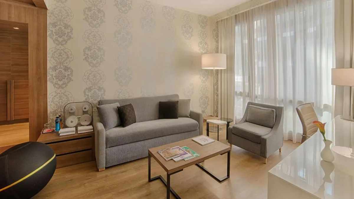 36 м2, балкон/ терраса, вид на город, двуспальная кровать или две односпальные кровати, гостиная с диваном. Количество гостей: 2 + 1Suite