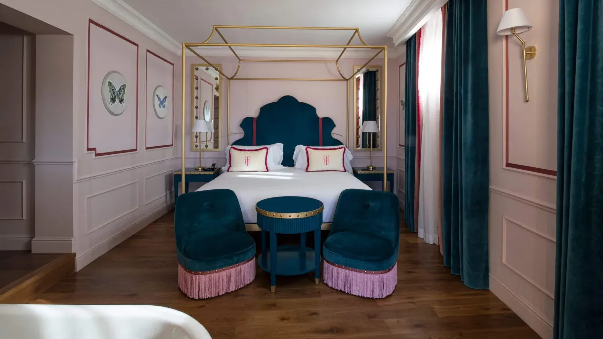 50 м2, спальня с двумя двуспальными кроватями с балдахином.Terrace Suite/ Тематический сюит