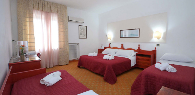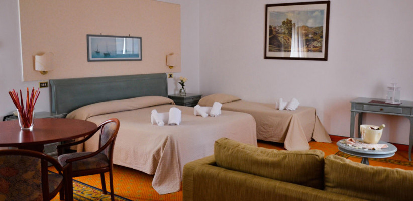 вид на море (не во всех номерах), двуспальная кровать + две односпальные кровати