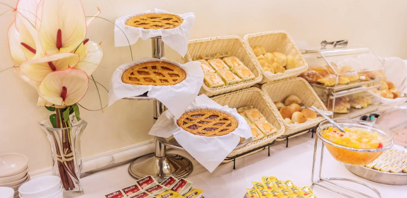 Каждое утро сервируется завтрак «шведский стол» с мясным ассорти, сырами, свежими фруктами и выпечкой.