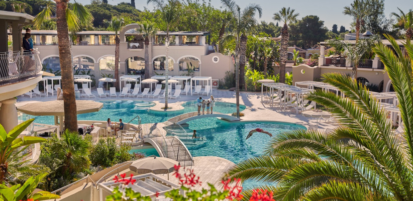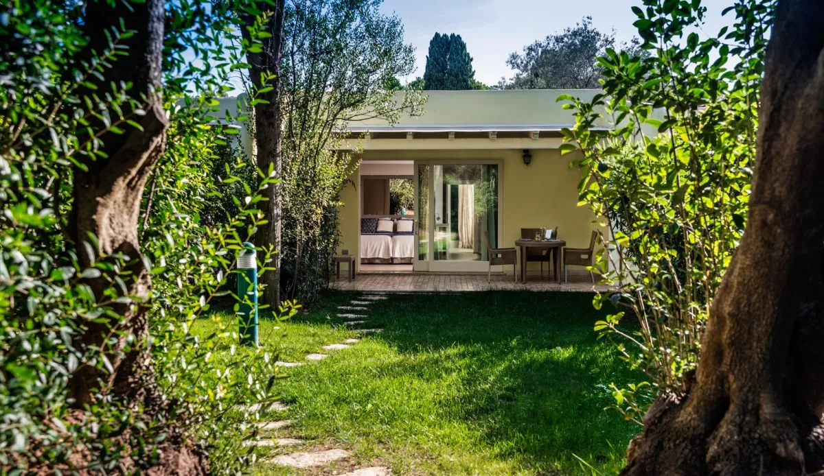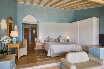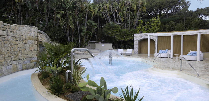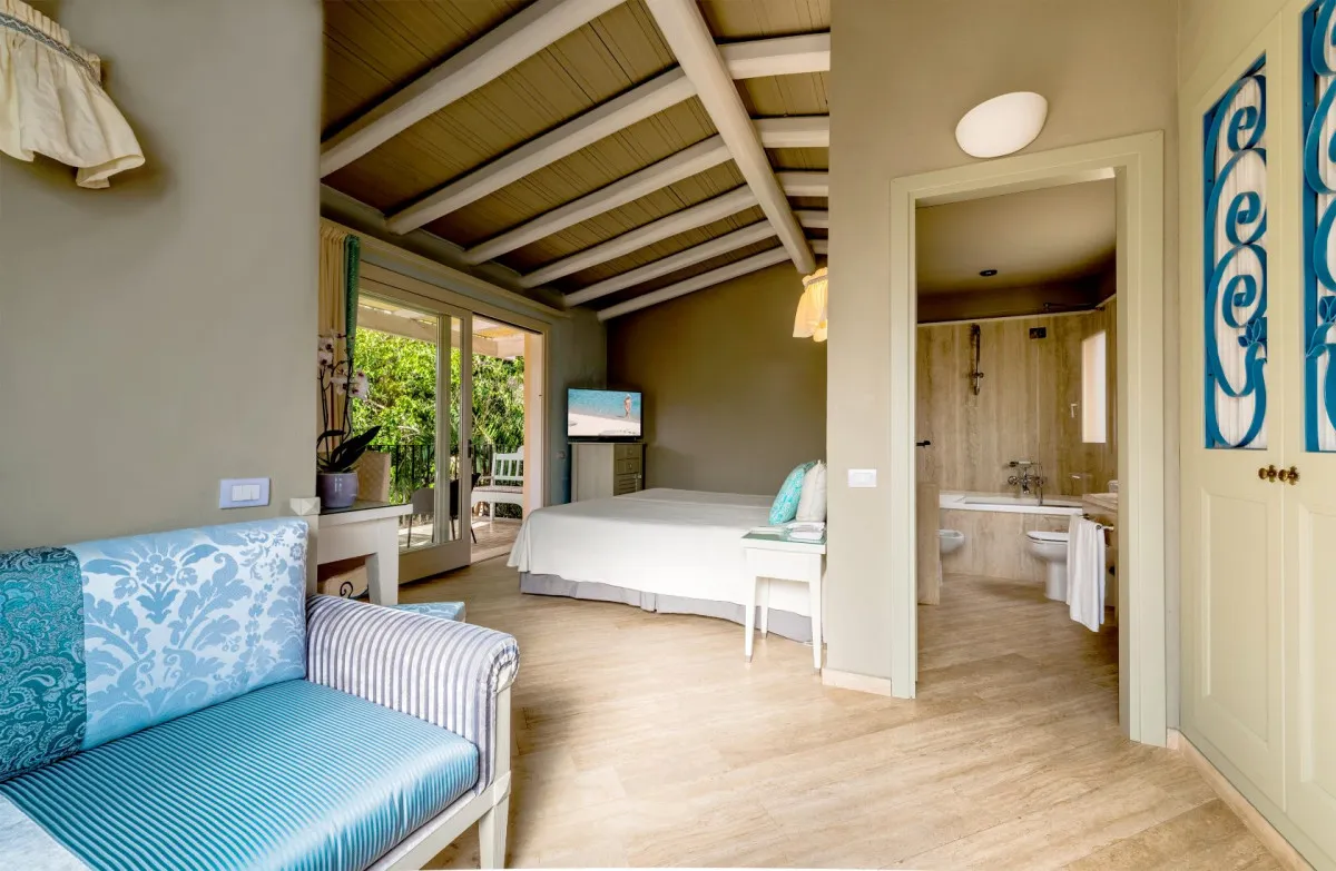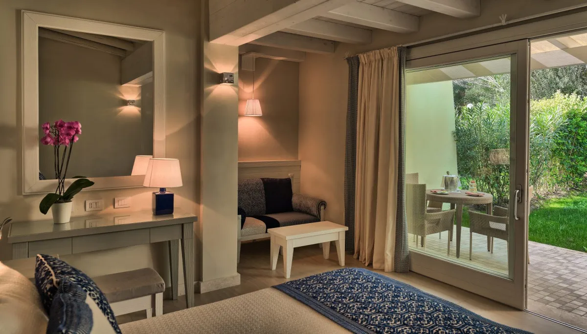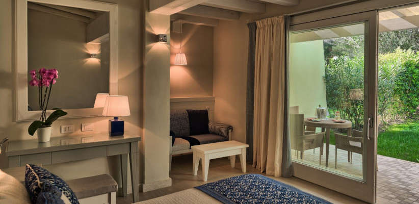 Отель Hotel Le Palme расположен на территории известного курортного комплекса Forte Village Resort на южном побережье Сардинии. Он занимает центральное место в огромном зеленом комплексе курорта, окруженном пальмами, цветущими растениями и соснами. Благодаря такому расположению отель отлично подходит для семейного отдыха: рядом находятся бассейны, детские зоны и аквапарк, а также главная площадь курорта Piazza Luisa. При этом сохраняется ощущение уединения и спокойствия.